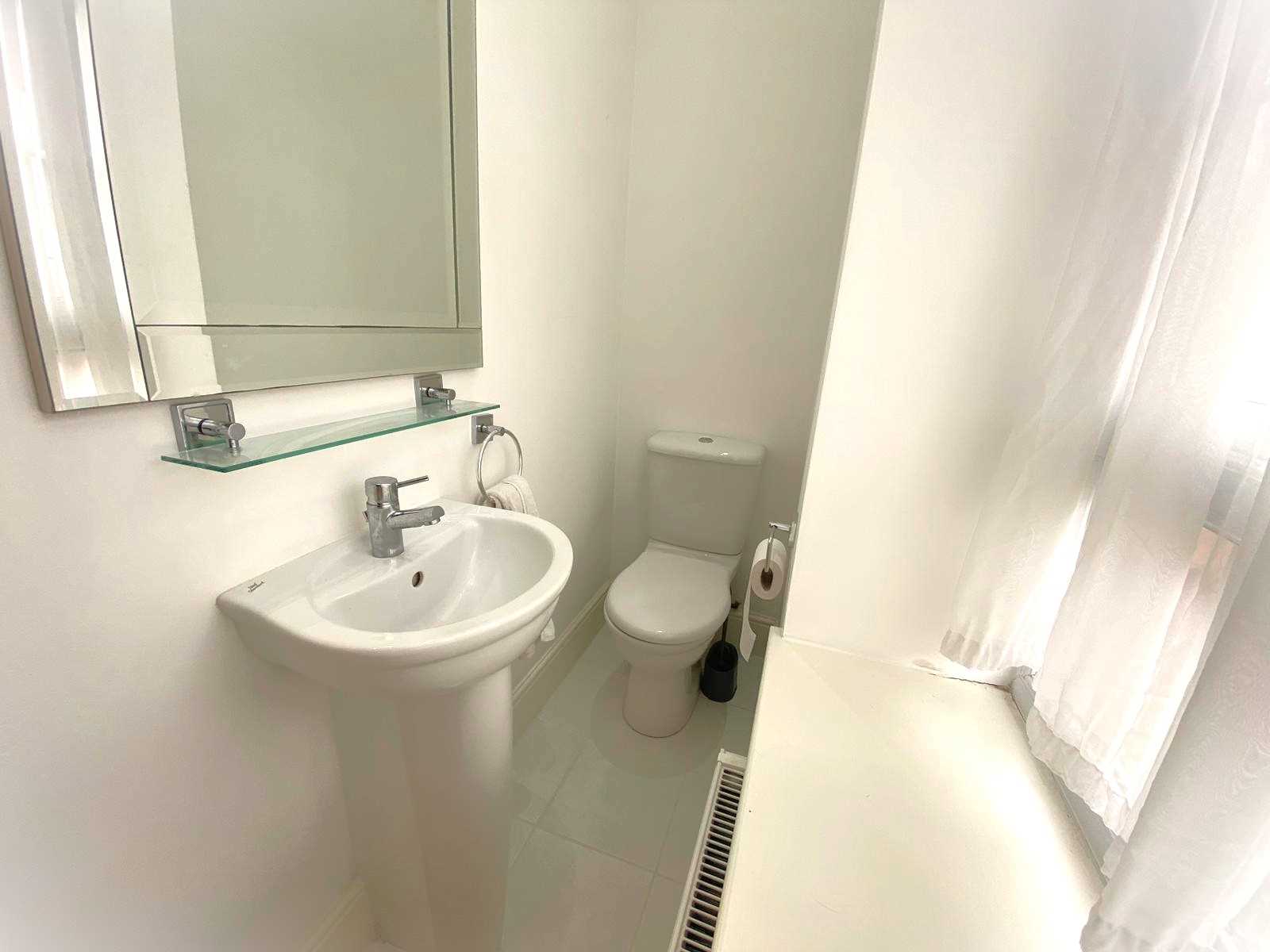 Double glazed window overlooking the courtyard, WC, tiled flooring, hand wash basin & radiator.