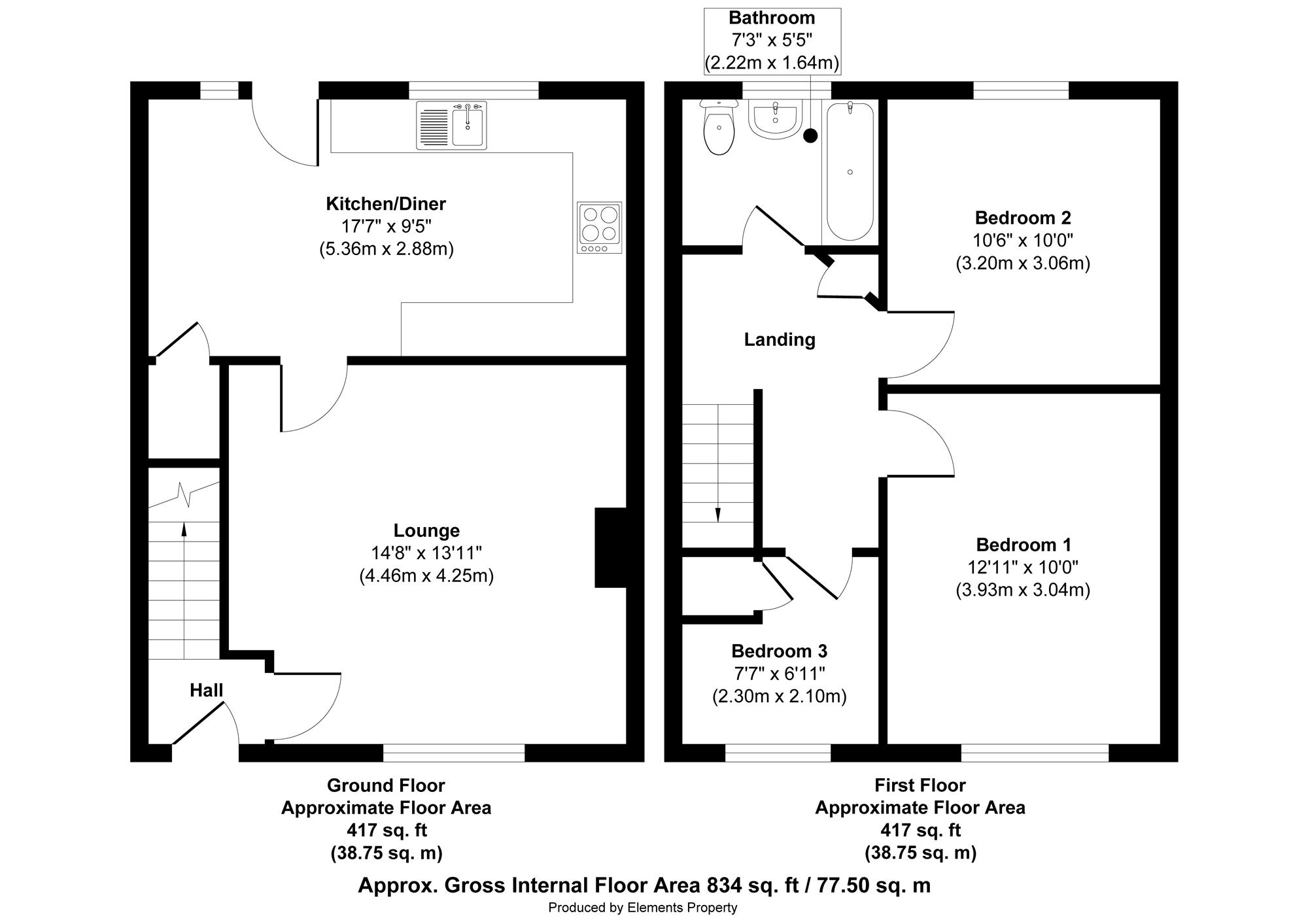 The property briefly comprises of an entrance hall, a bright lounge and a contemporary kitchen. Upstairs there are two generous double bedrooms, a further single bedroom and a family bathroom.