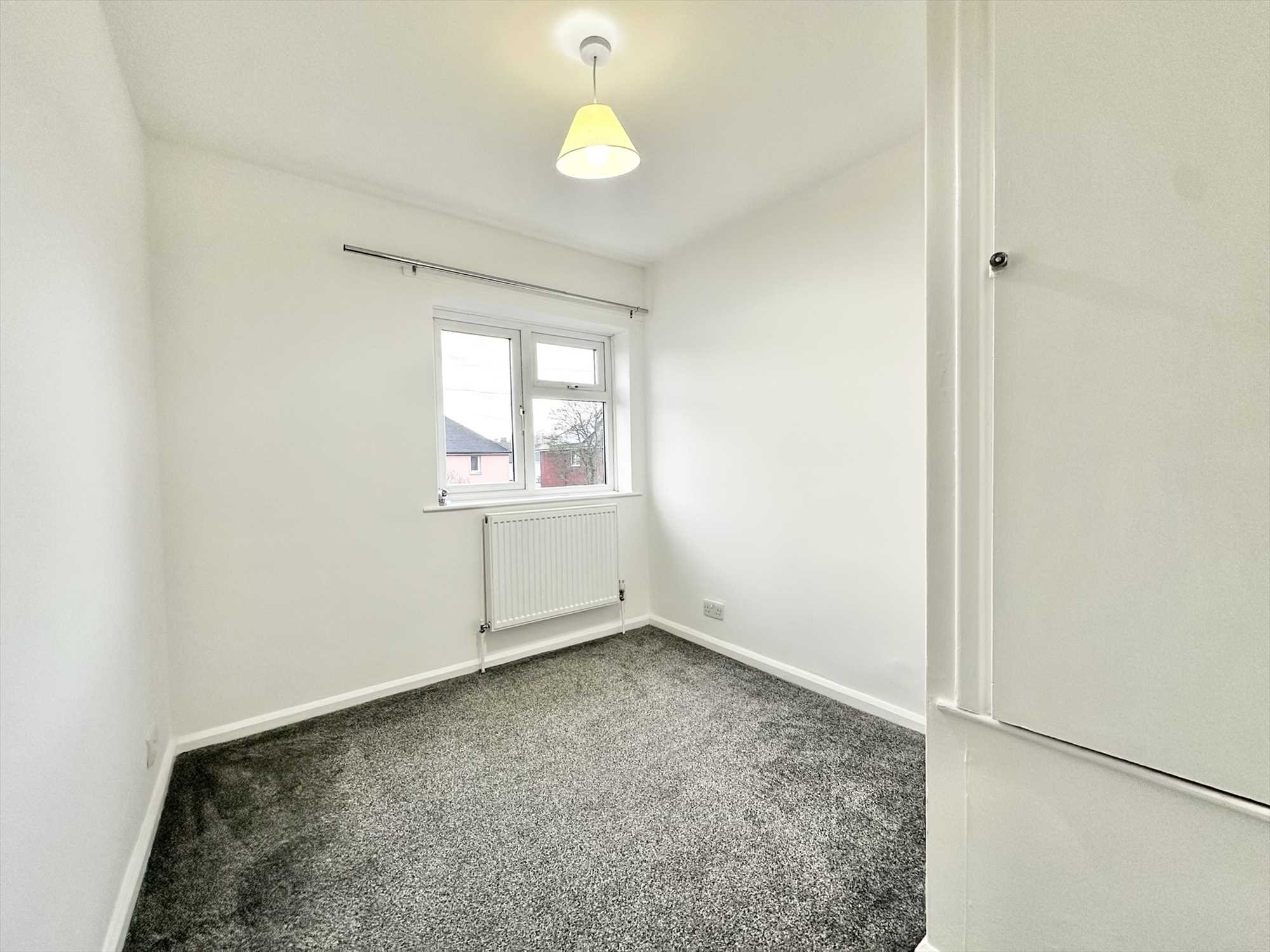 UPVC double glazed window to the front aspect, ceiling light pendant, radiator, carpet underfoot.
