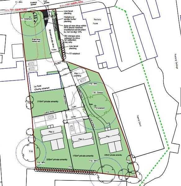 Outline planning permission was granted by Rushcliffe Borough Council on 13th December 2017 for the erection of three detached dwellings. (17/02447/OUT).