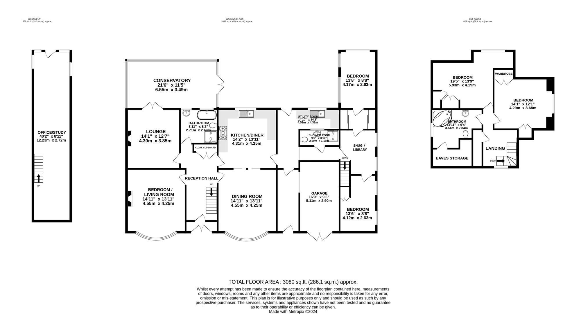 Brimming with character and spanning over 3,000 square feet, the property offers an abundance of adaptable living space. Upon entering, you're welcomed by a traditional porch with original stained glass door, a spacious entrance hall, a generous living room, a lounge with a log burner, a beautiful conservatory overlooking the rear garden, a contemporary bathroom, and a charming open-plan dining kitchen with sliding barn doors leading to a formal dining room complete with log burner. The ground floor also benefits from a utility room, garage, another downstairs bathroom, two double bedrooms, a snug/ library, and a distinctive basement office. Upstairs you'll find a further two double bedrooms and a family bathroom.