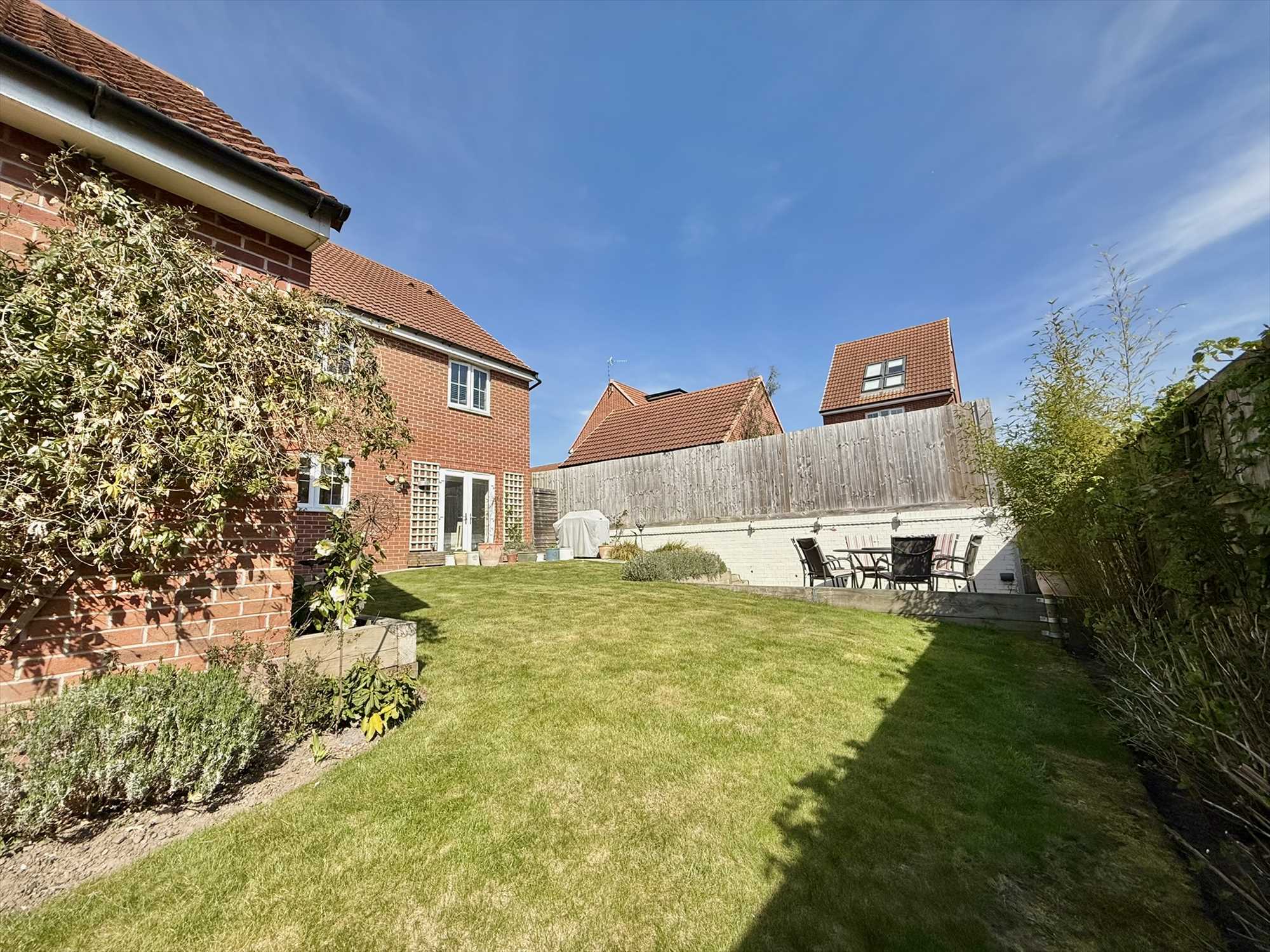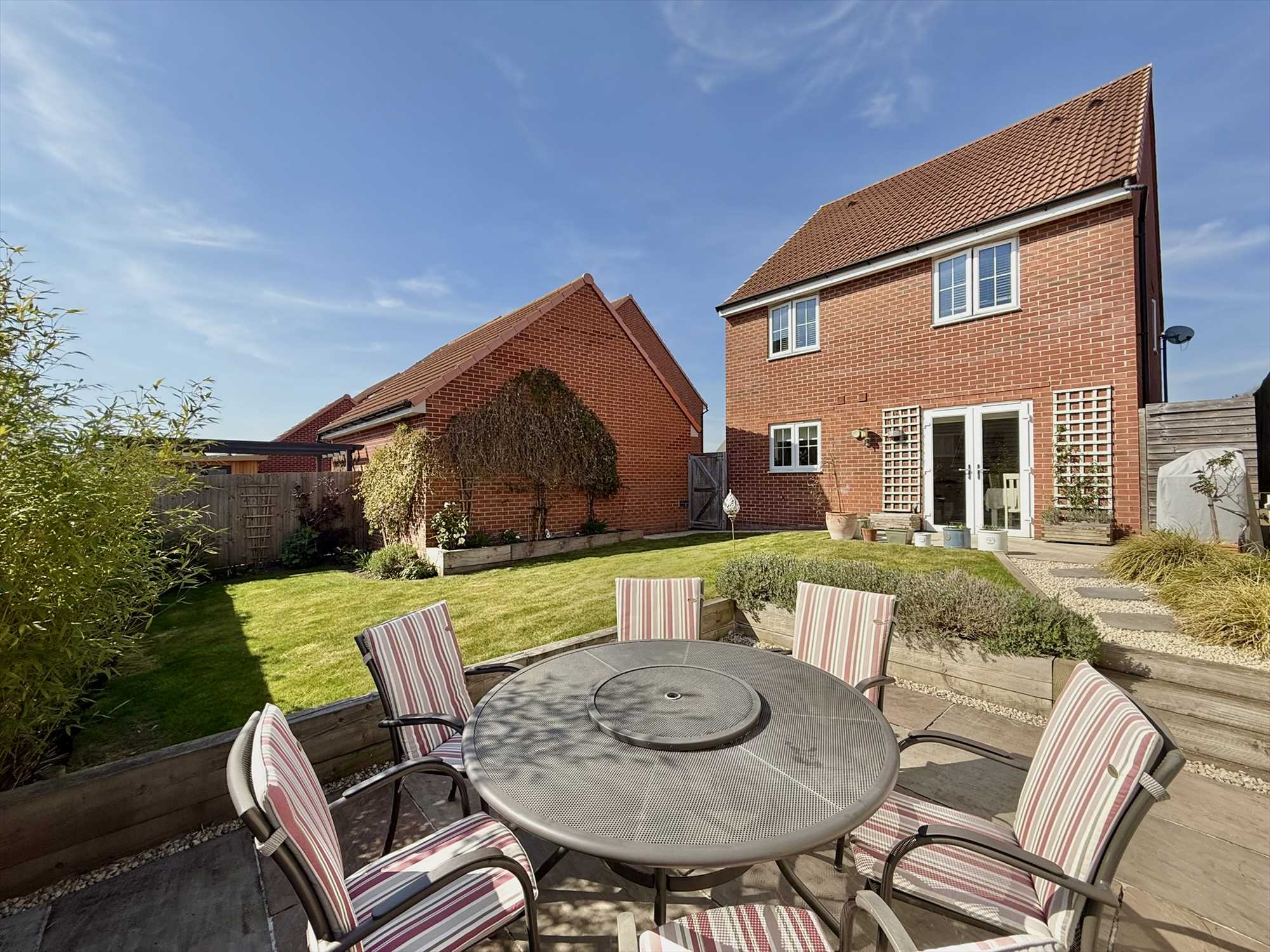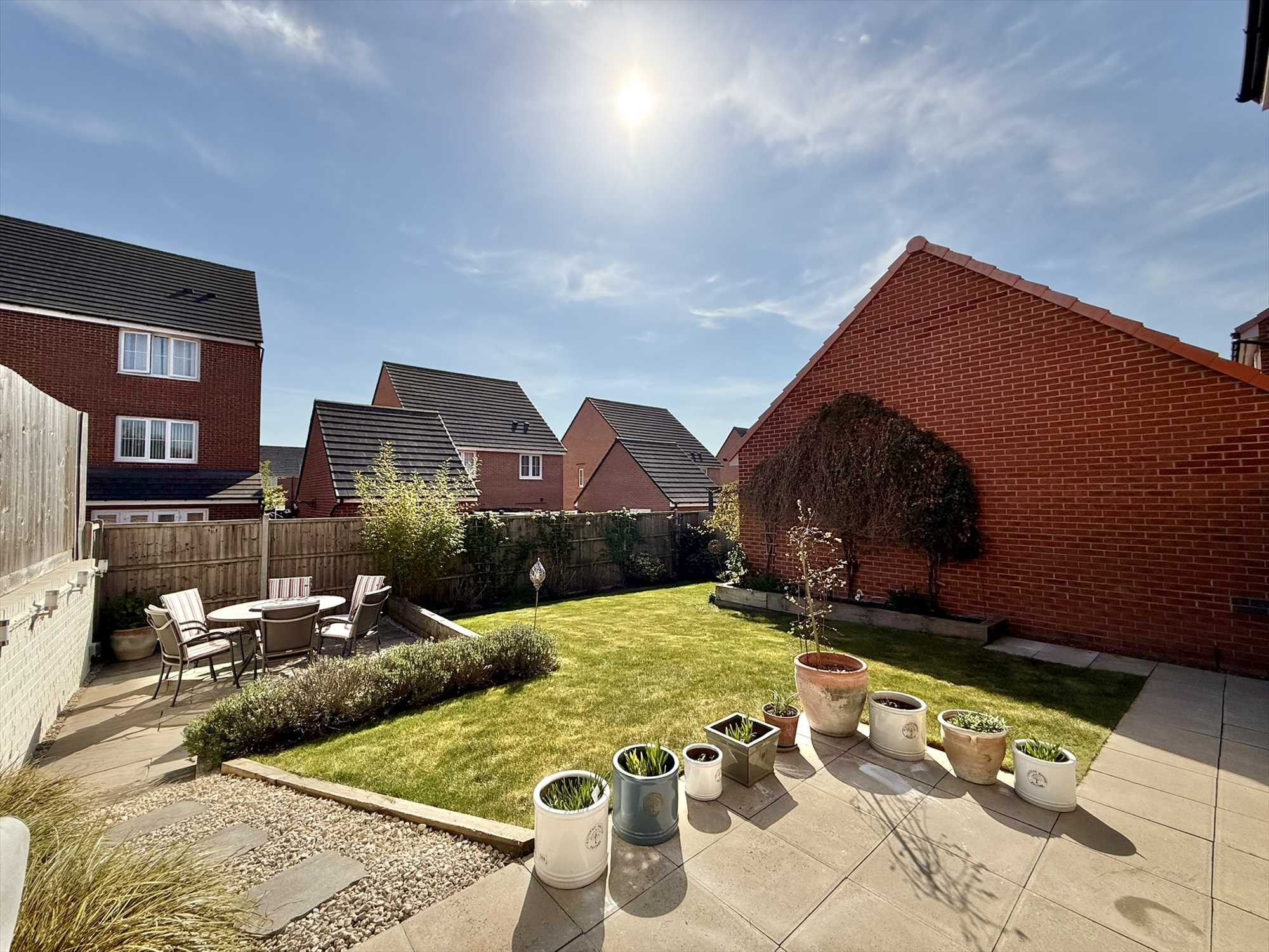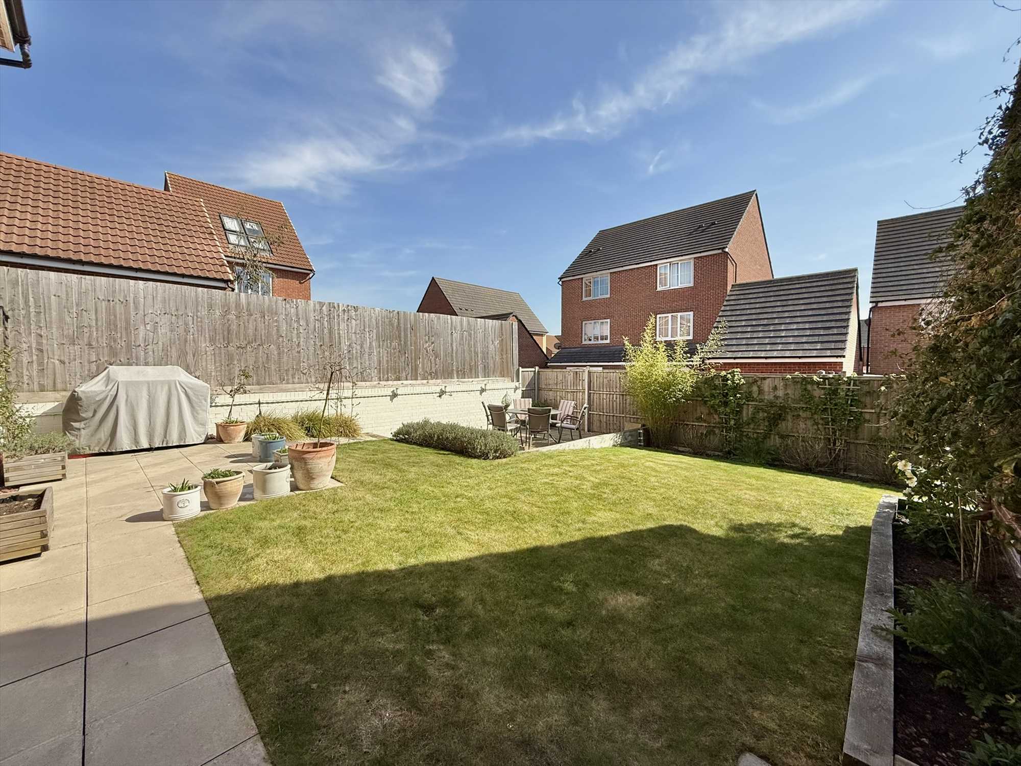 The south facing rear garden is fully enclosed, featuring a well kept lawn, mature borders with shrubs and climbers, and a multiple patio areas perfect for entertaining or providing a sunny spot to relax. The garden further benefits from an outside tap, exterior electrical sockets, and a side gate giving access to driveway & garage.