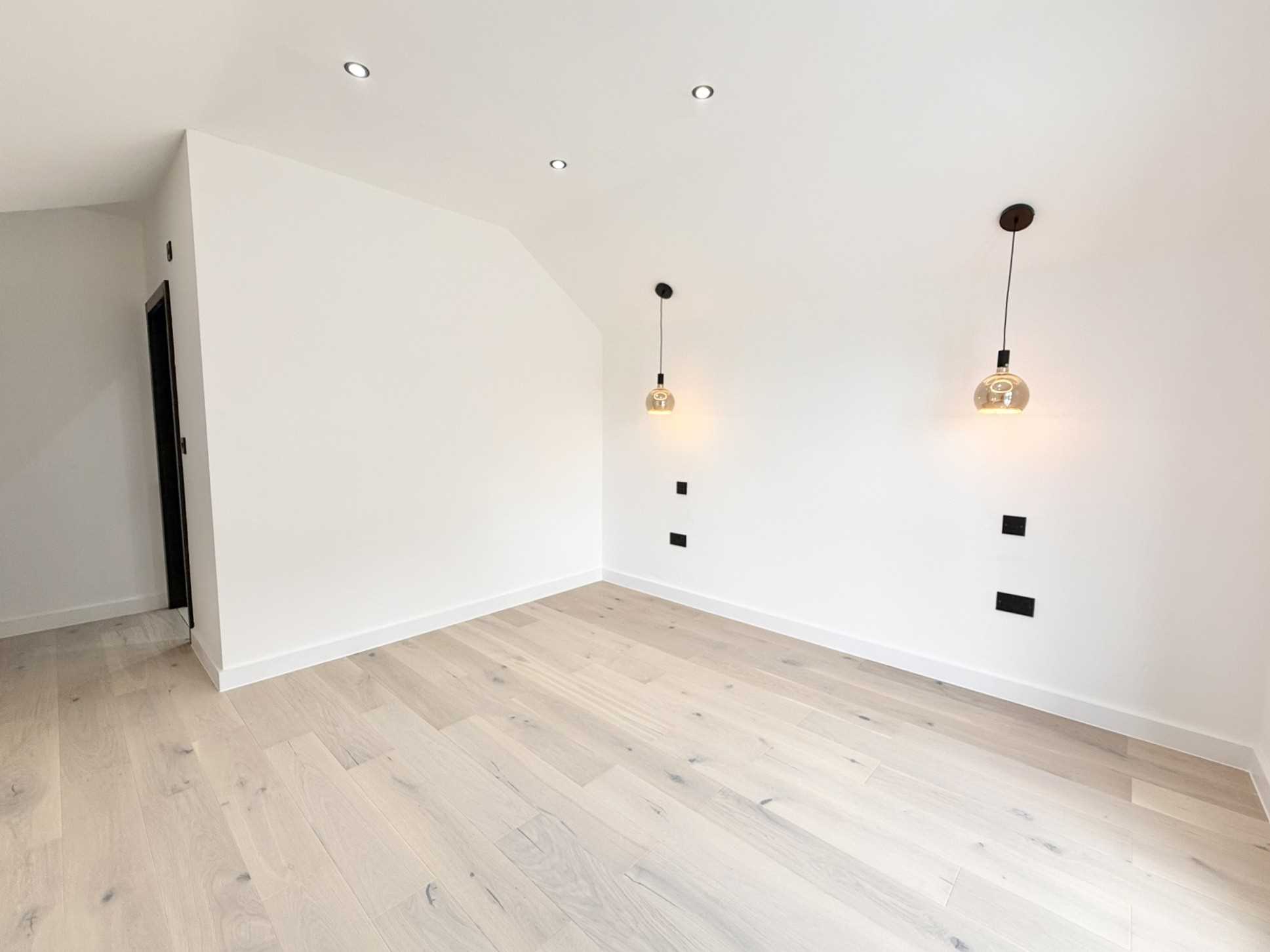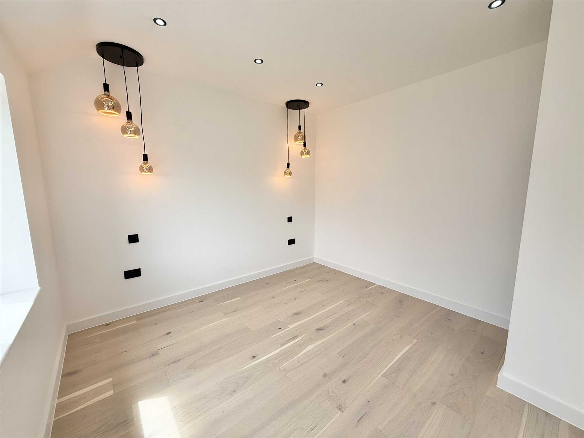 UPVC double glazed sound proof glass to the front aspect, wooden flooring, two hanging pendants, spotlight ceiling pendants.