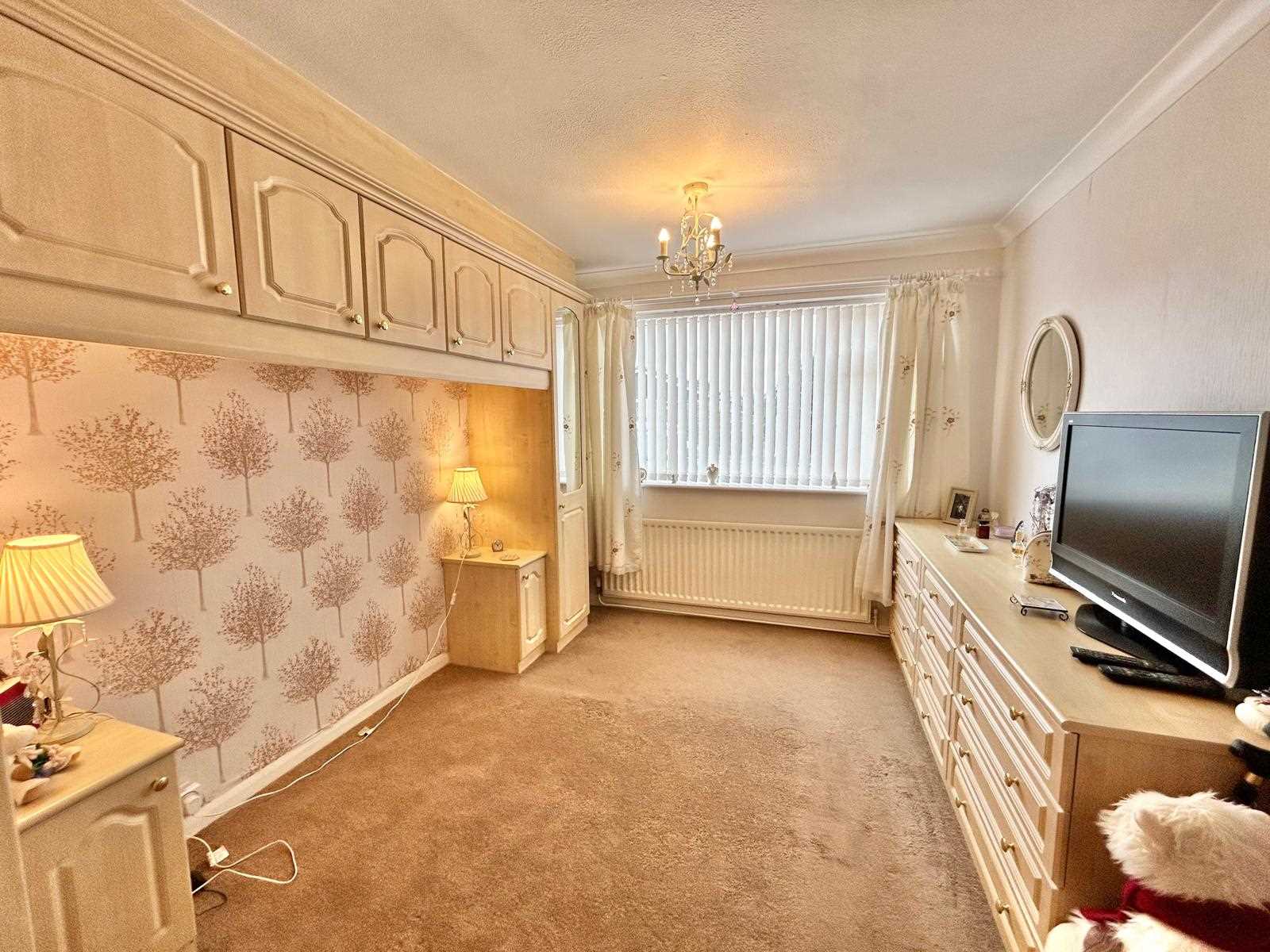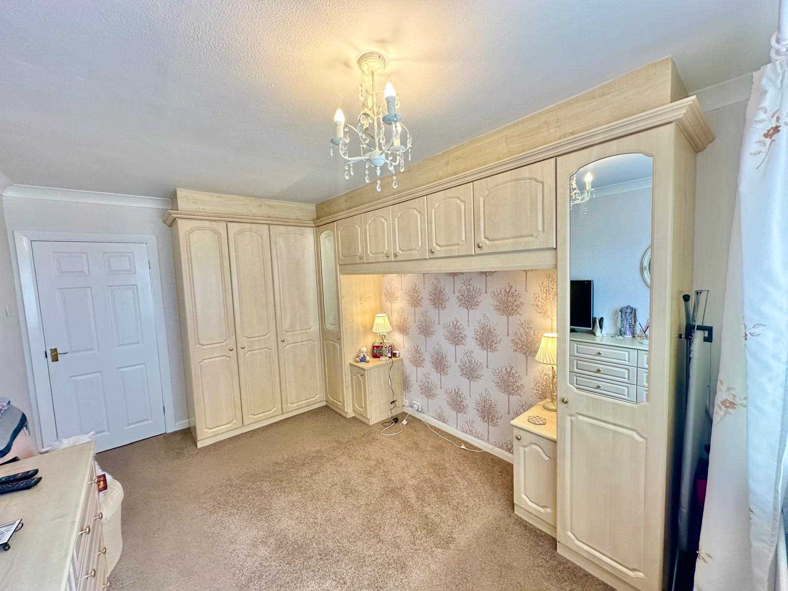 Upvc double glazed window to the front of the property, ceiling light fitting, radiator, fitted wardrobes providing storage, two fitted bedside units.