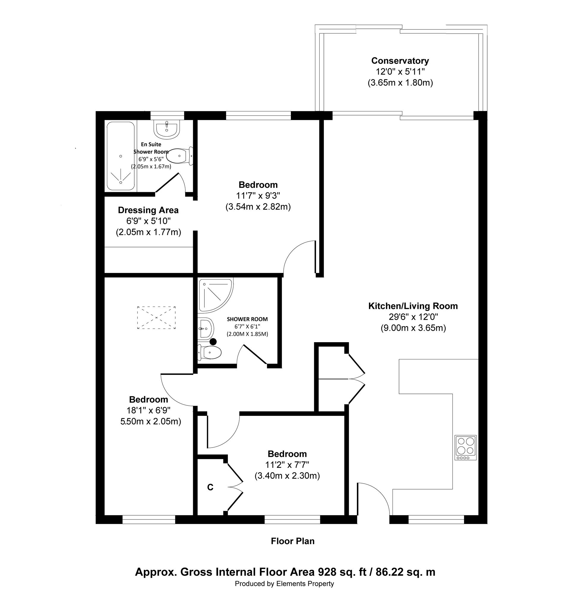 Conservatory 3.65m (12' 0") x 1.80m (5' 11")