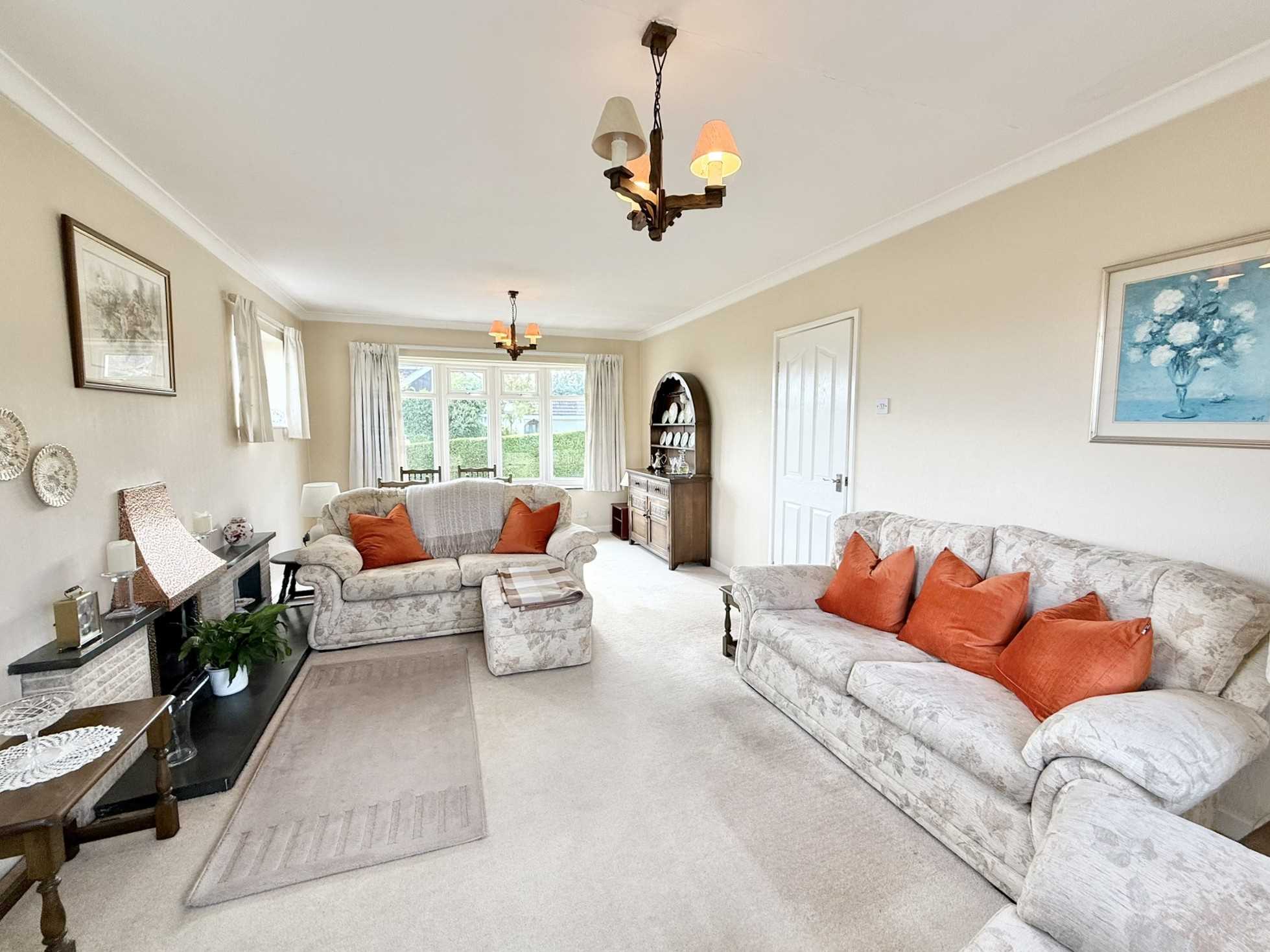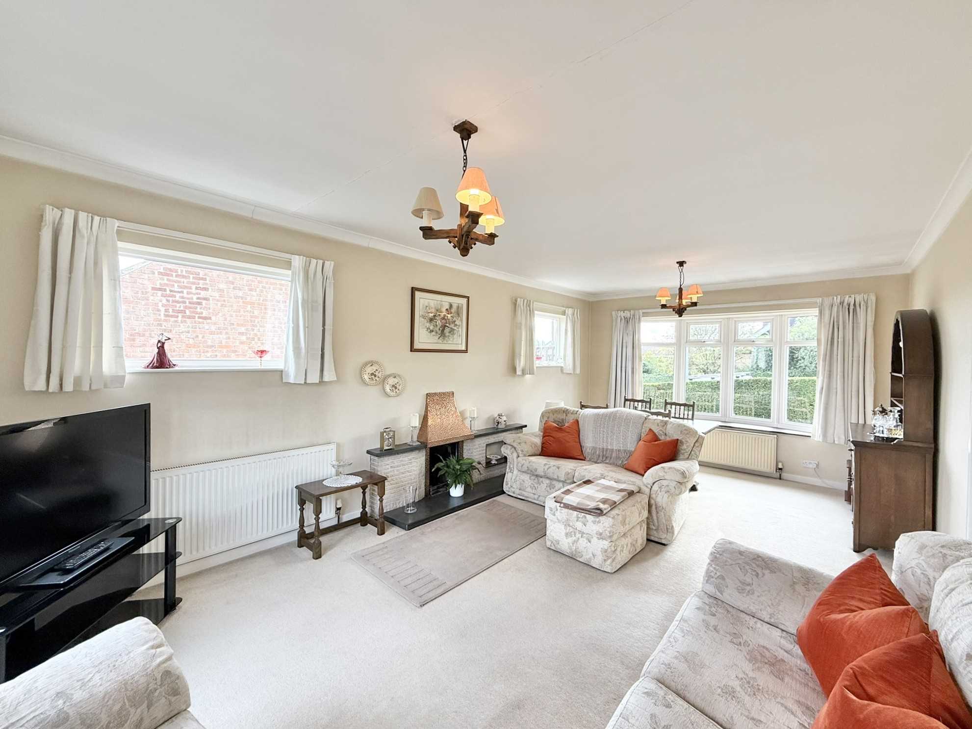 UPVC double glazed windows to front and side aspect, UPVC double glazed french doors to rear aspect, feature gas fireplace, two ceiling light pendants, two radiators, carpet.