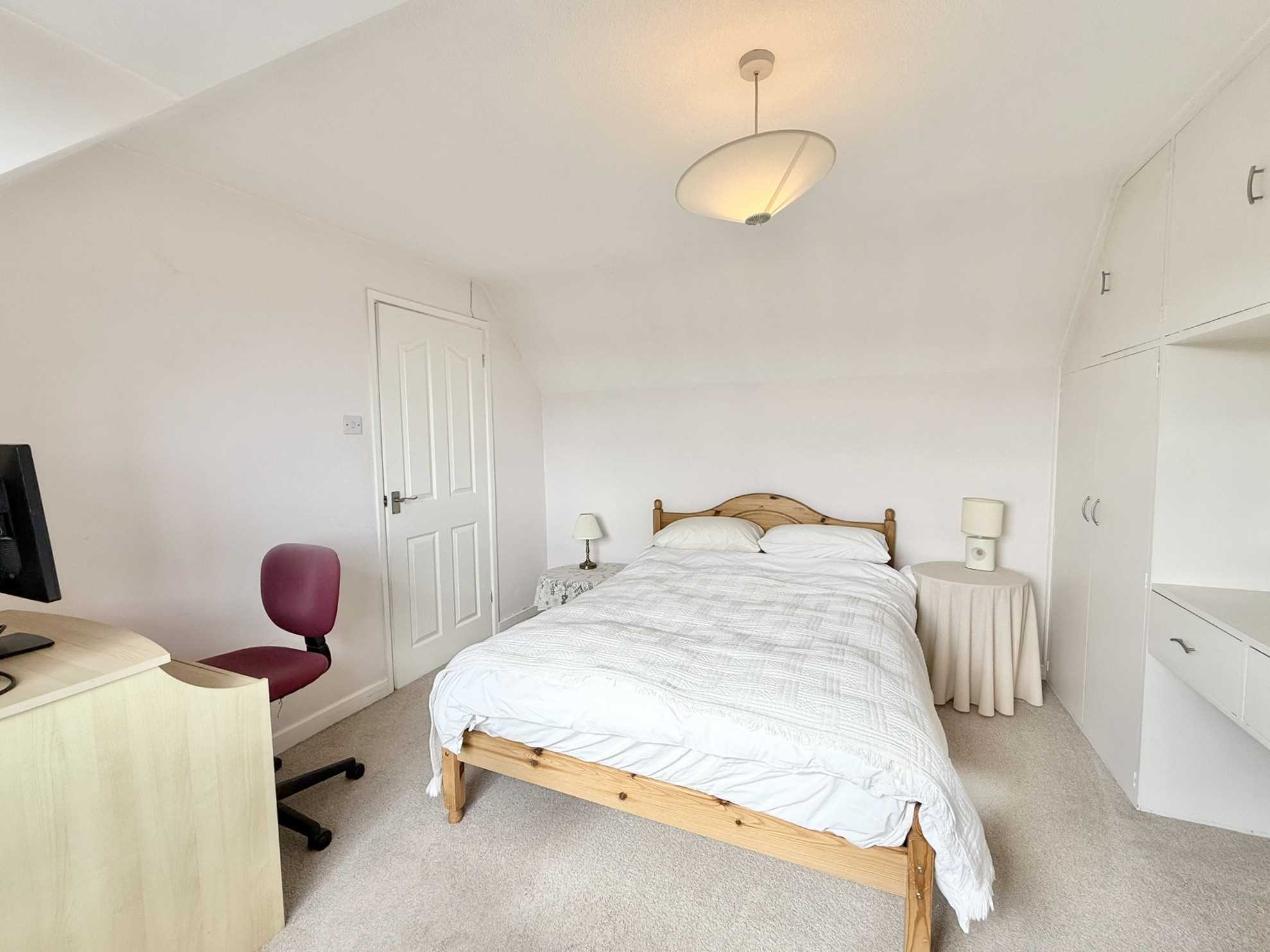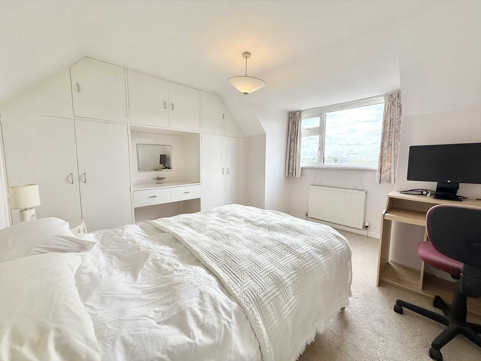 UPVC double glazed window to front aspect, ceiling light pendant, built in wardrobes, radiator, carpet.
