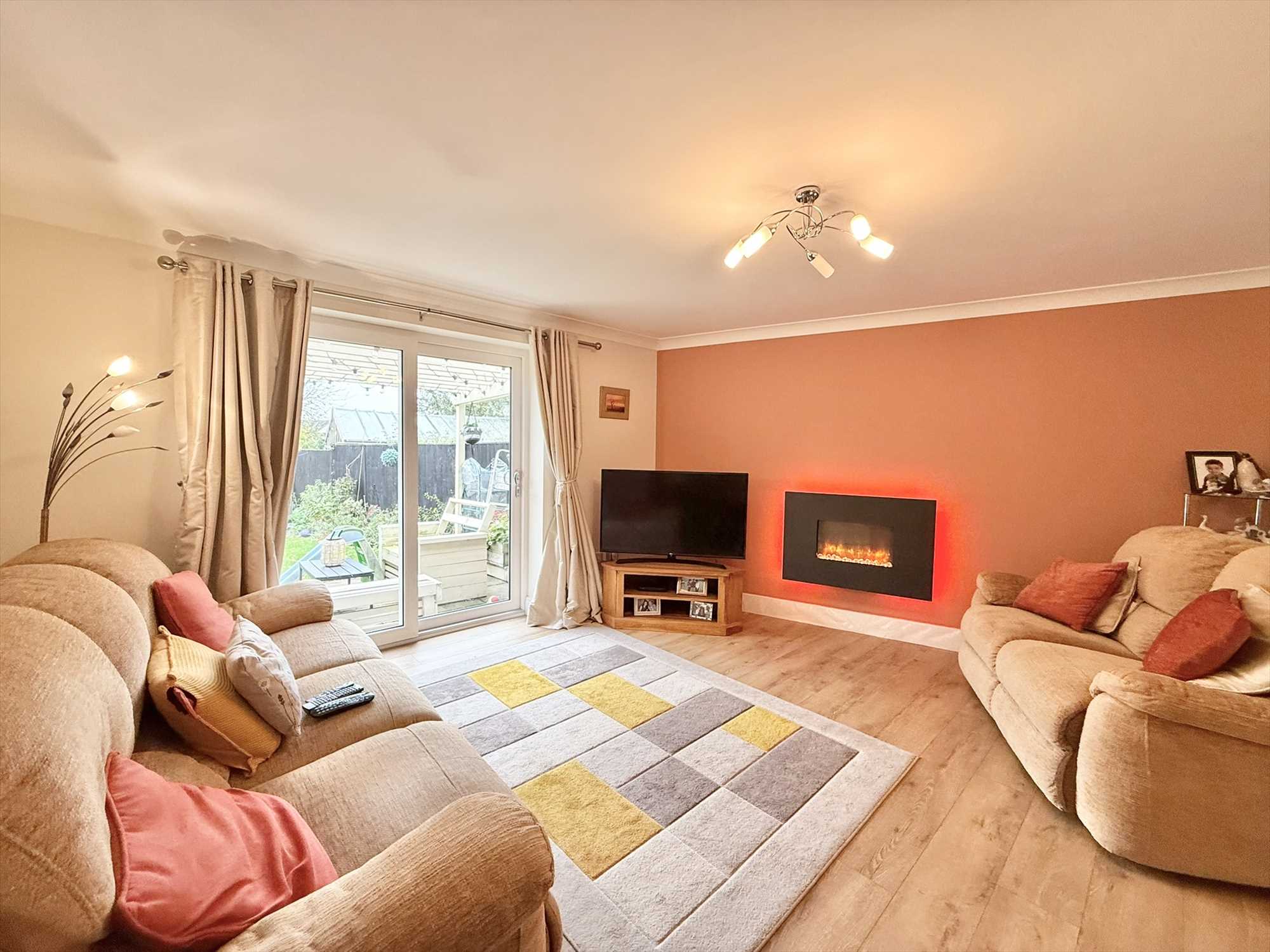 Double glazed sliding patio doors to rear aspect, ceiling light fitting, feature electric fireplace, radiator, wood effect flooring.