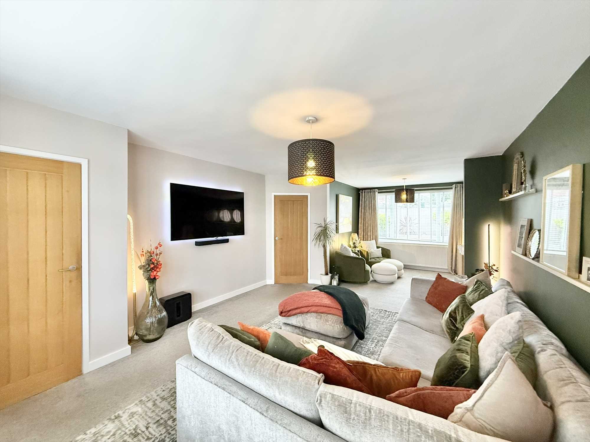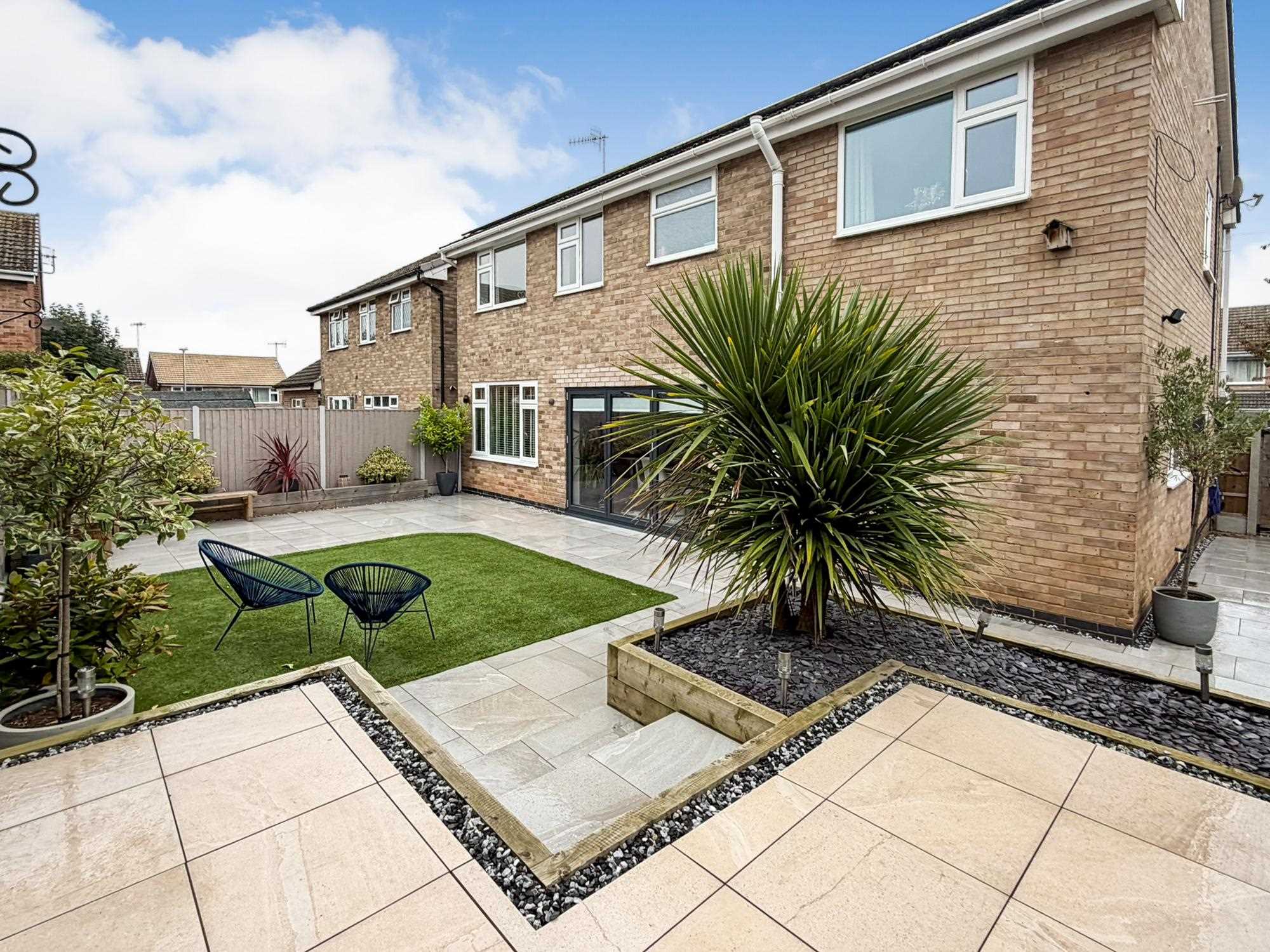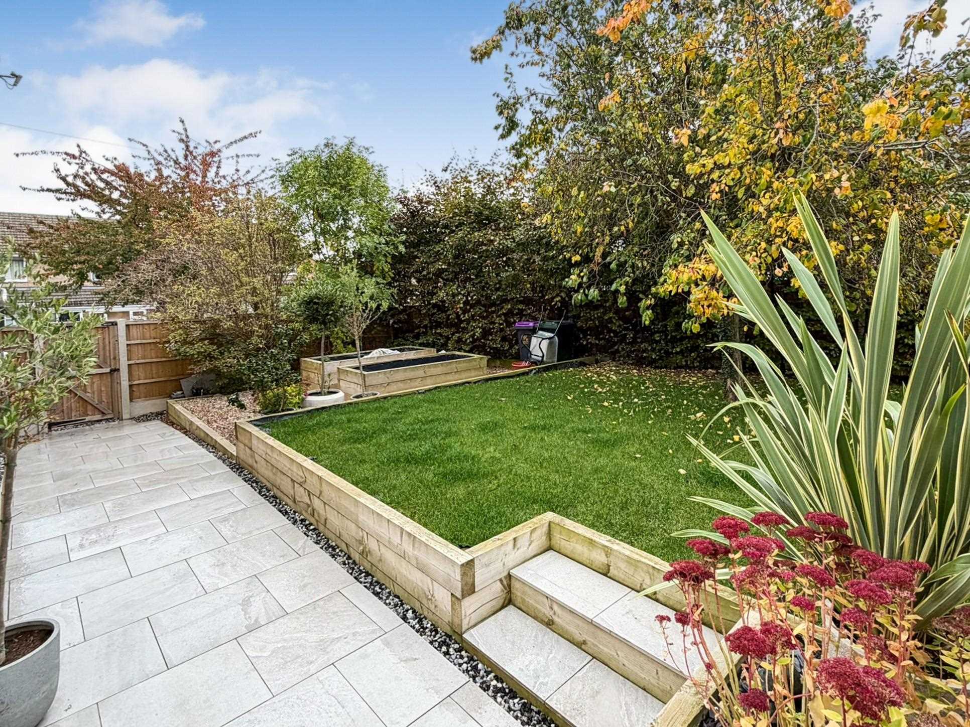 Outside, the rear garden is fully enclosed by timber fencing and extends around the rear and side of the property. It features a beautifully maintained lawn, mature borders, established shrubs and trees, raised beds, and thoughtfully landscaped patio seating area- perfect for entertaining or relaxing in the sunshine. Additional highlights include an outdoor tap, exterior power sockets, and an EV charging point.
