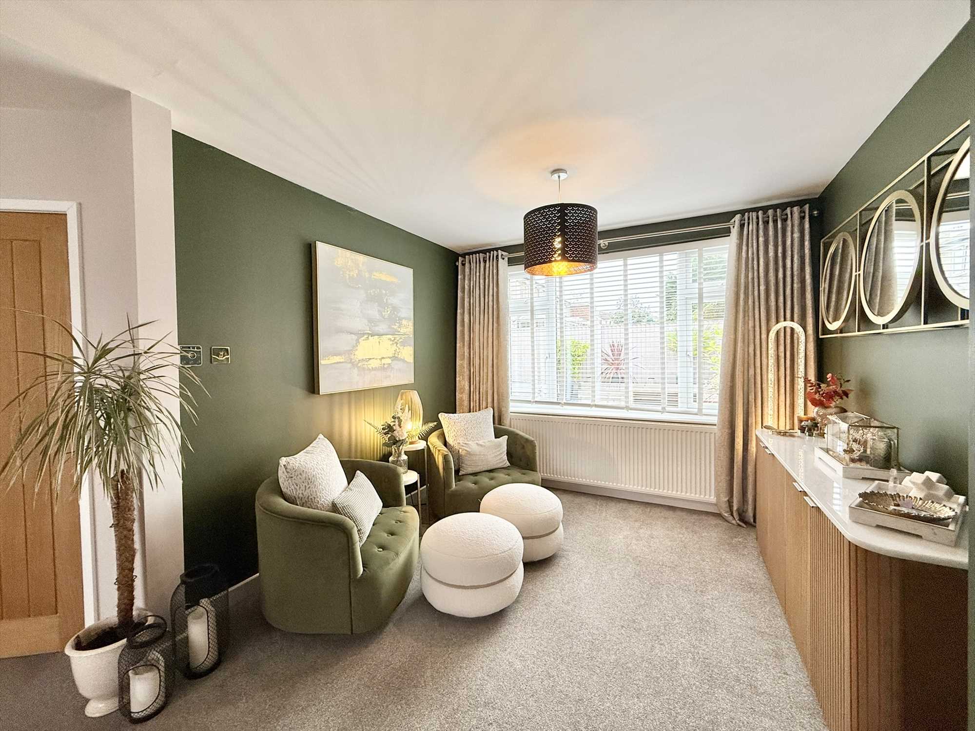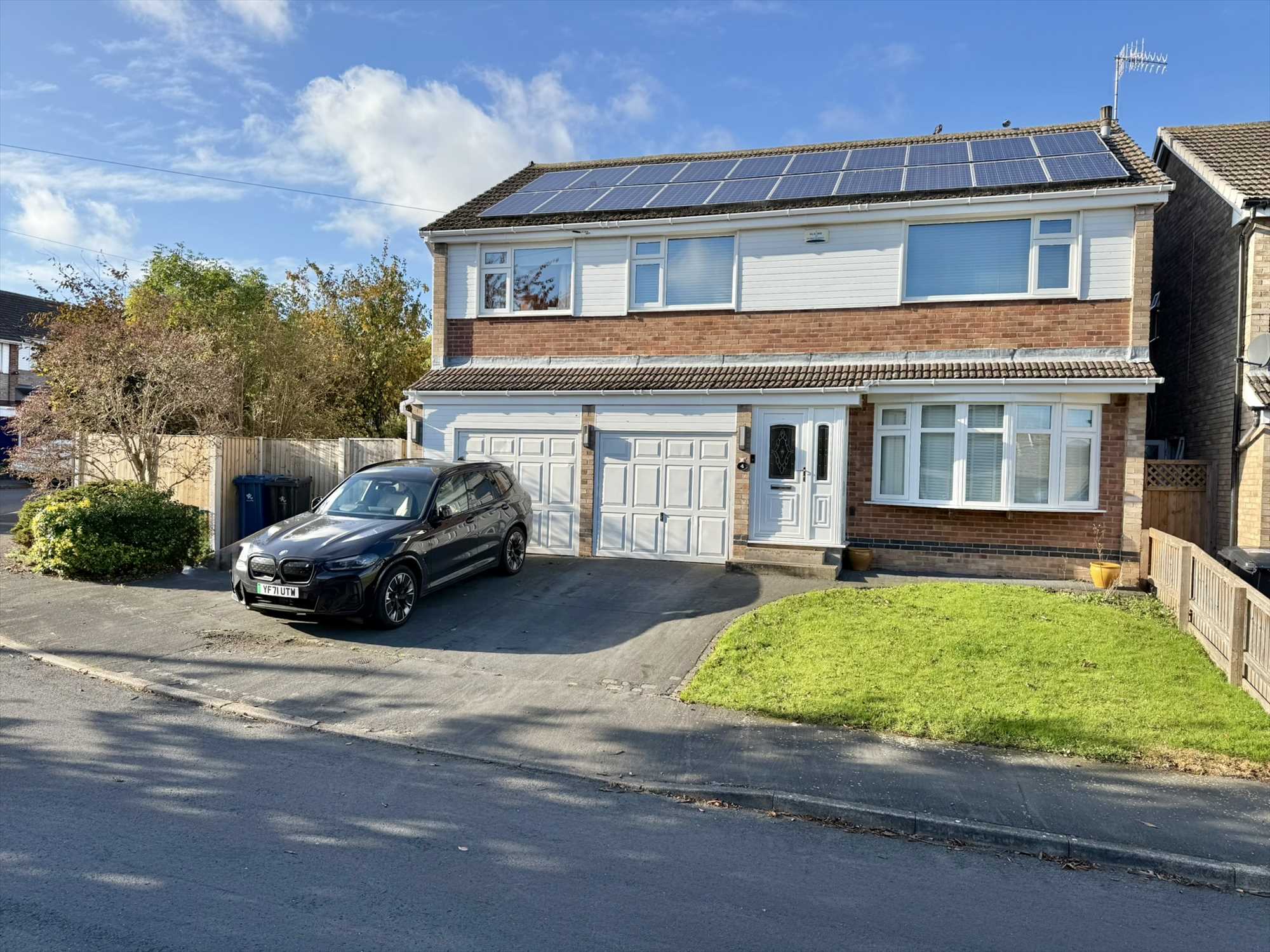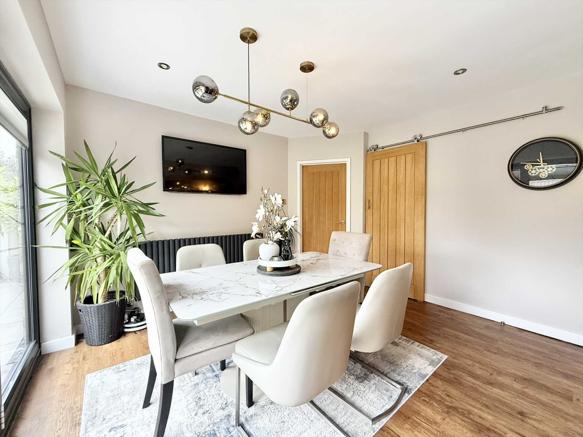 Outside, the rear garden is fully enclosed by timber fencing and extends around the rear and side of the property. It features a beautifully maintained lawn, mature borders, established shrubs and trees, raised beds, and thoughtfully landscaped patio seating area- perfect for entertaining or relaxing in the sunshine. Additional highlights include an outdoor tap, exterior power sockets, and an EV charging point.