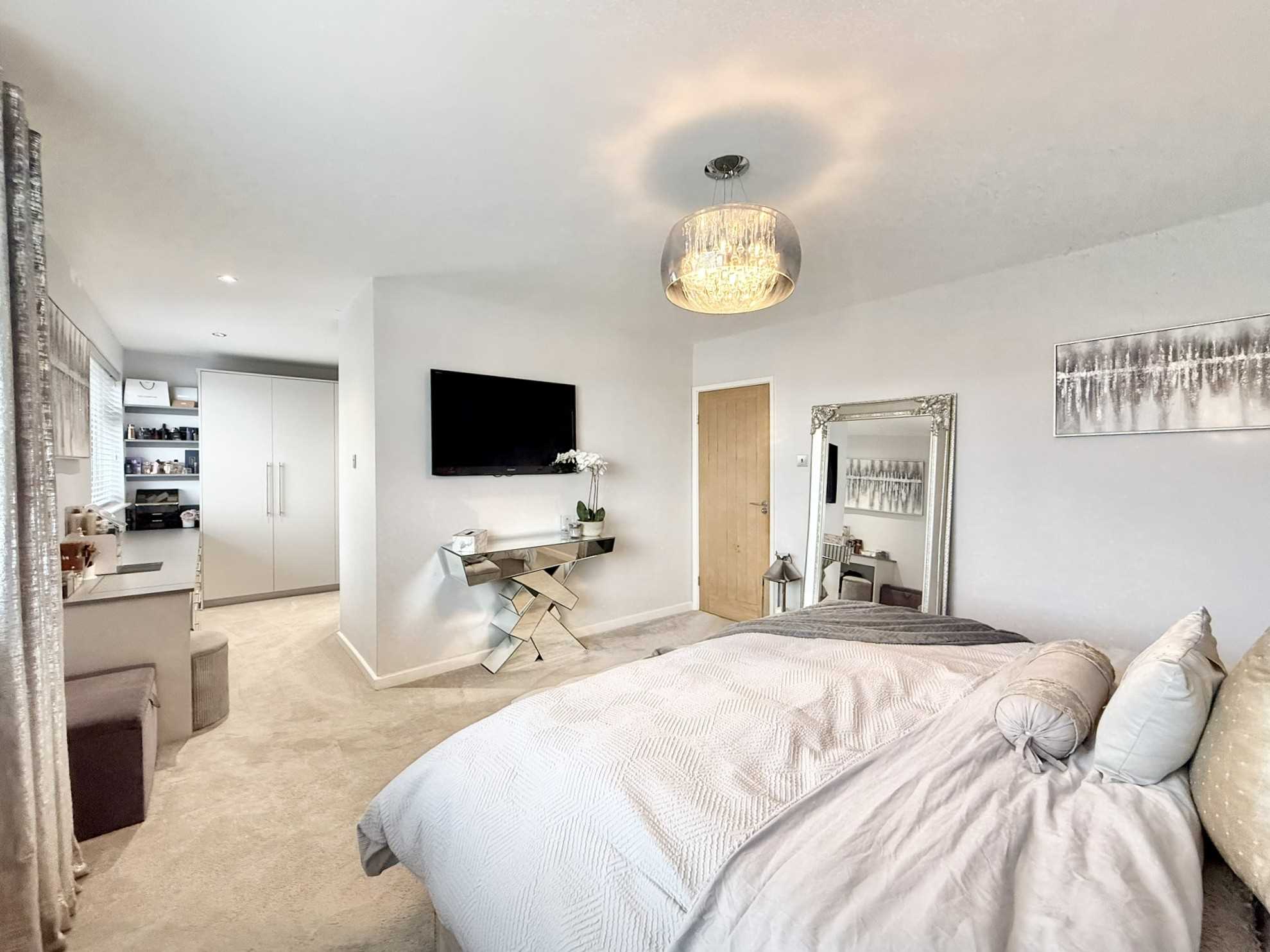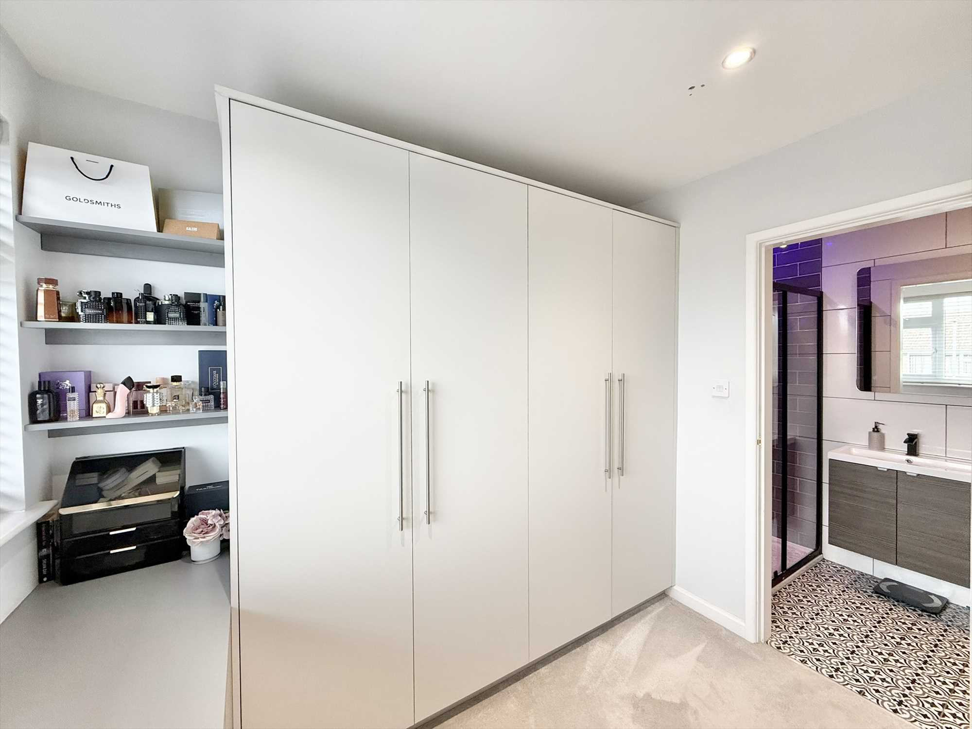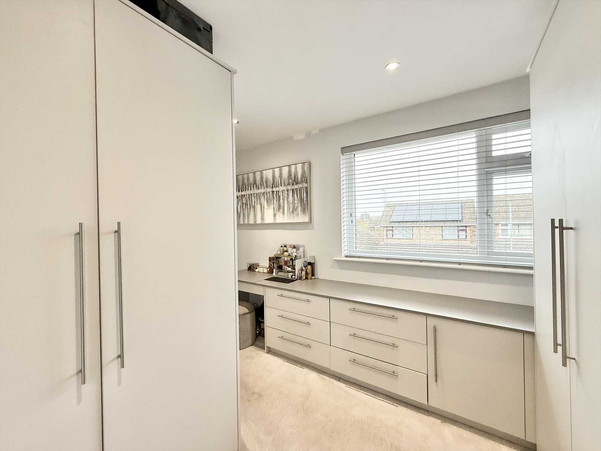UPVC double glazed window to front aspect, ceiling spotlights, built in wardrobes, drawers, shelves, and dressing table, carpet.