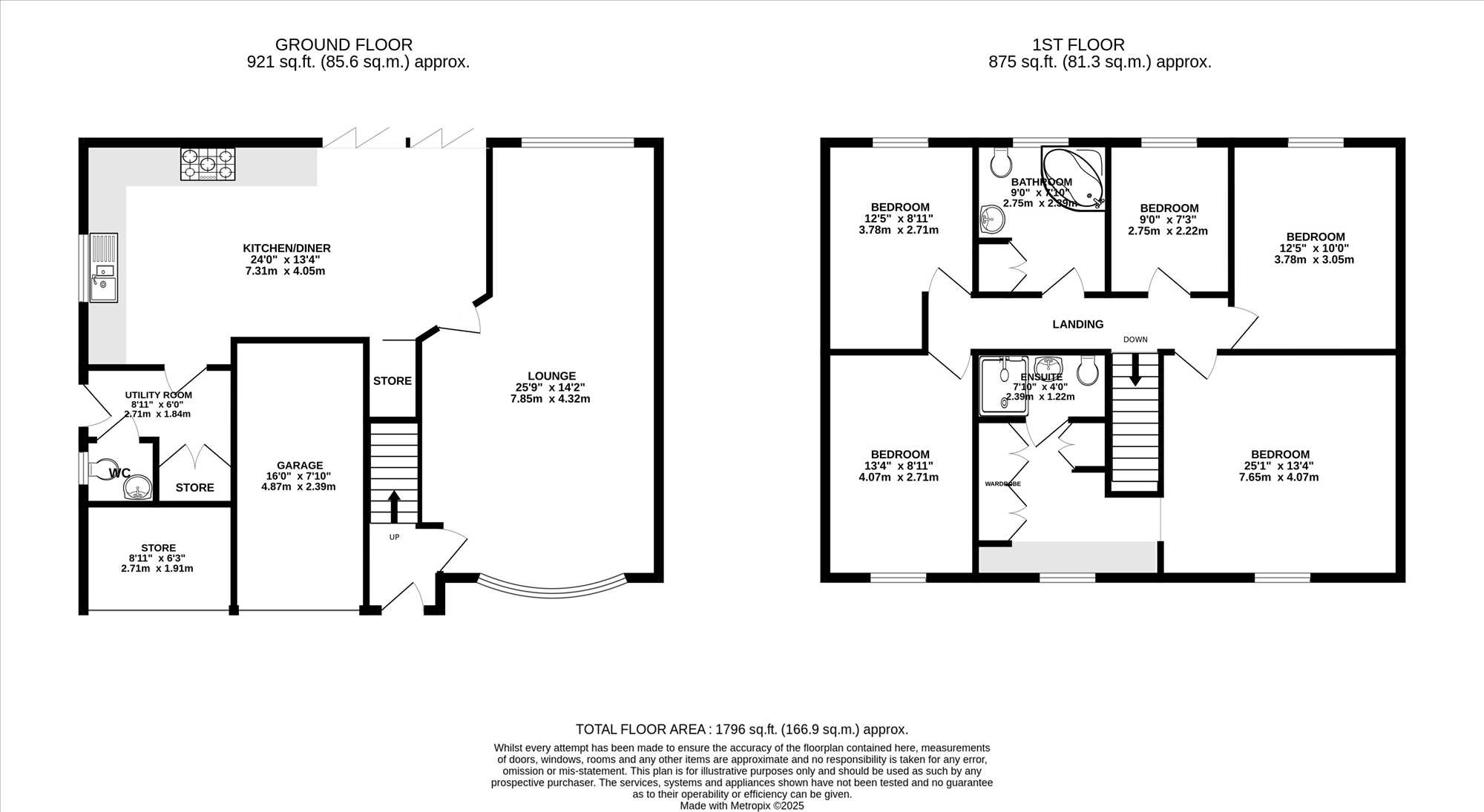 To the front, a driveway provides off-street parking for multiple vehicles, along with access to a single garage and a separate garage store.