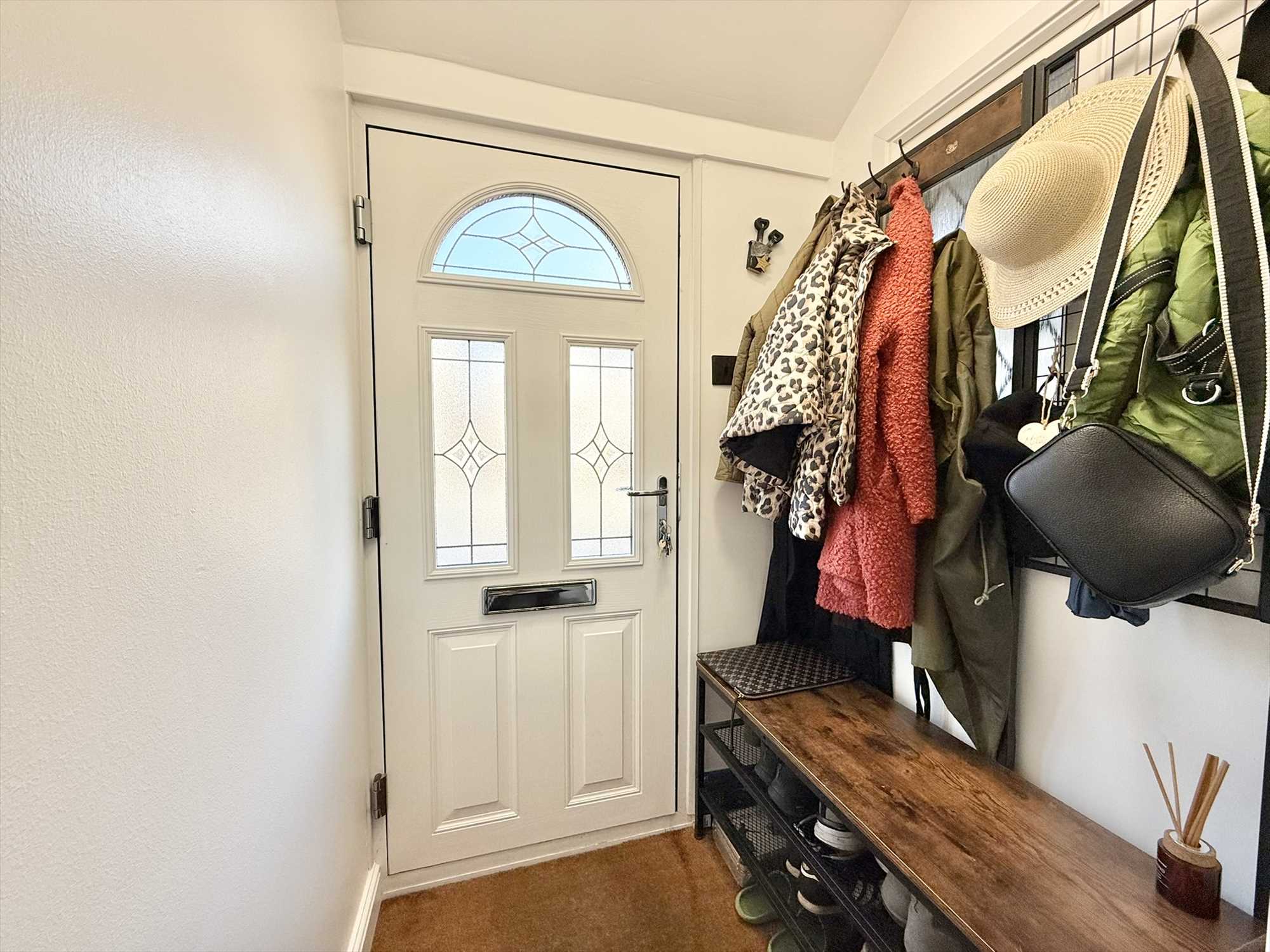 UPVC obscure double glazed exterior door to front aspect, ceiling light fitting, recessed doormat