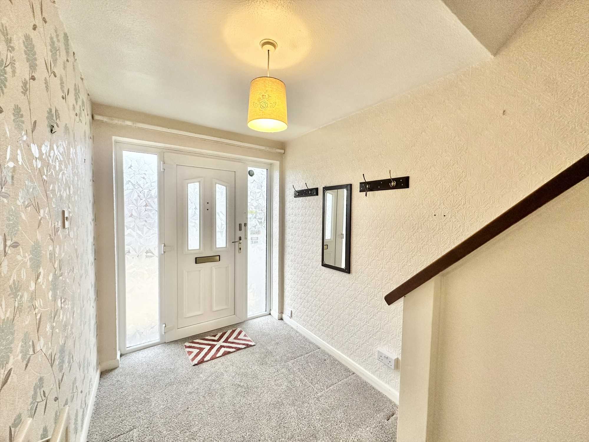 UPVC door to the front aspect, ceiling light pendant, radiator, carpet underfoot.
