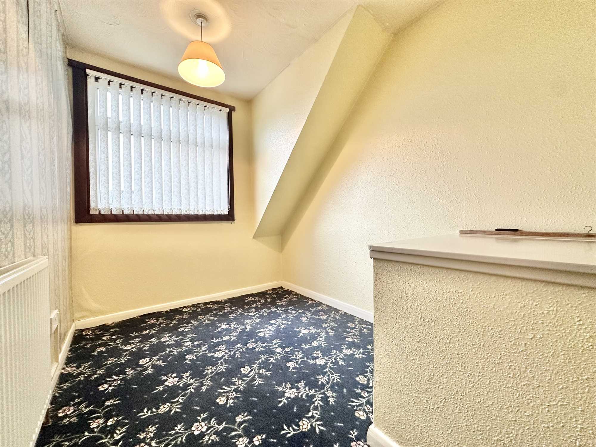 Double glazed window to the front aspect, ceiling light pendant, radiator, carpet underfoot.