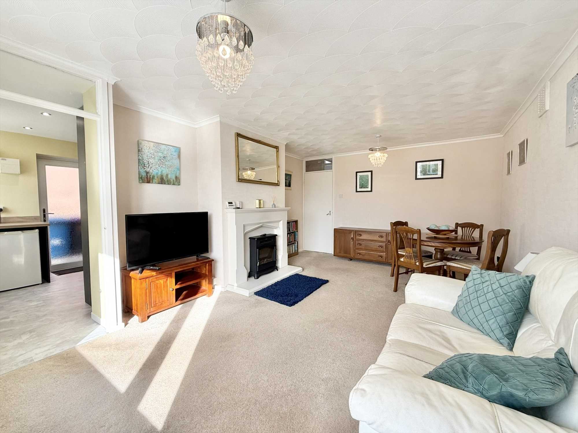This lovely property features a stylish breakfast kitchen, a bright and spacious lounge, a sleek shower room, and two double bedrooms. Outside, the charming rear garden offers a peaceful retreat, while the front of the property benefits from a driveway, providing ample off road parking and access to a detached single garage.