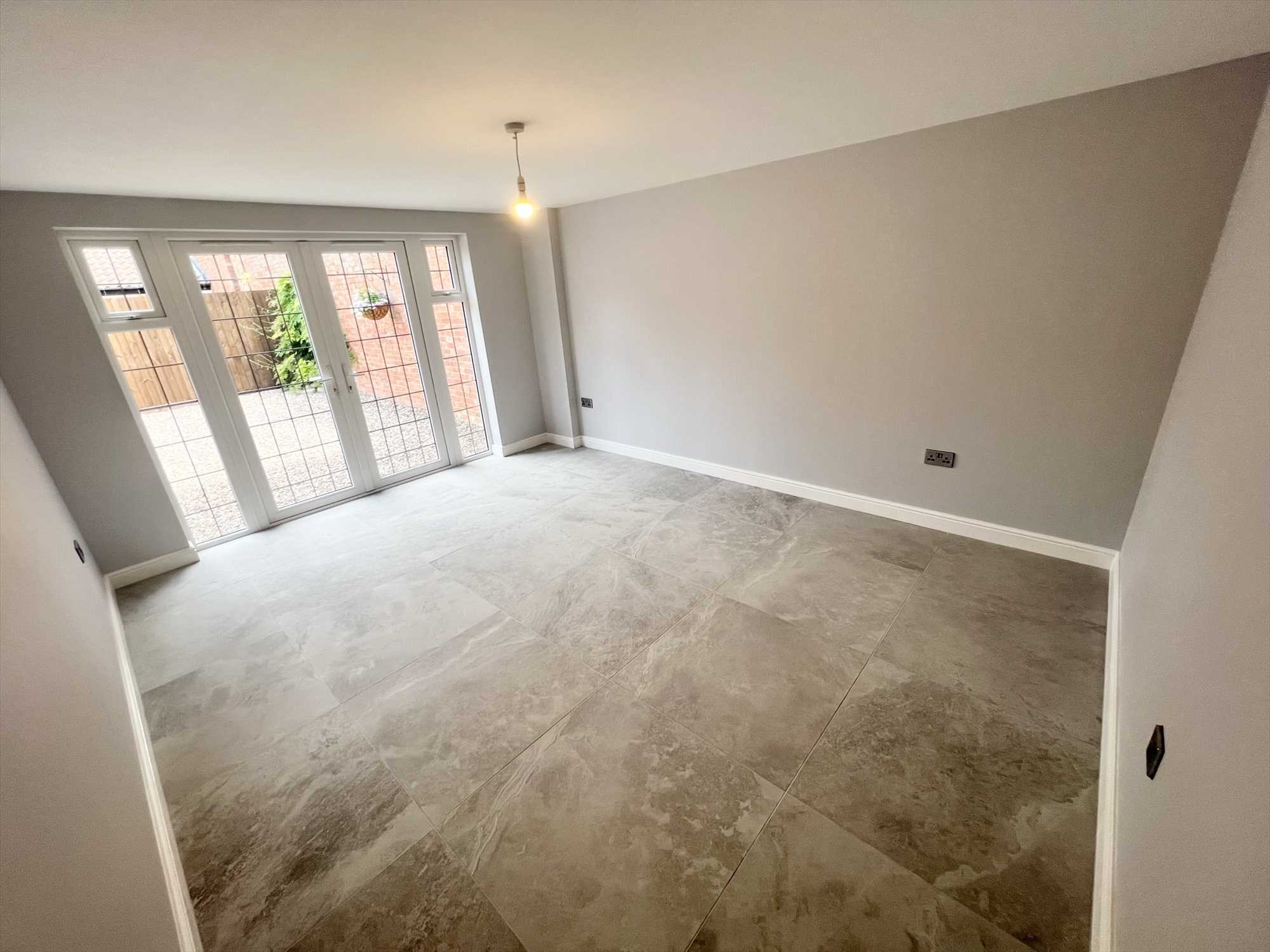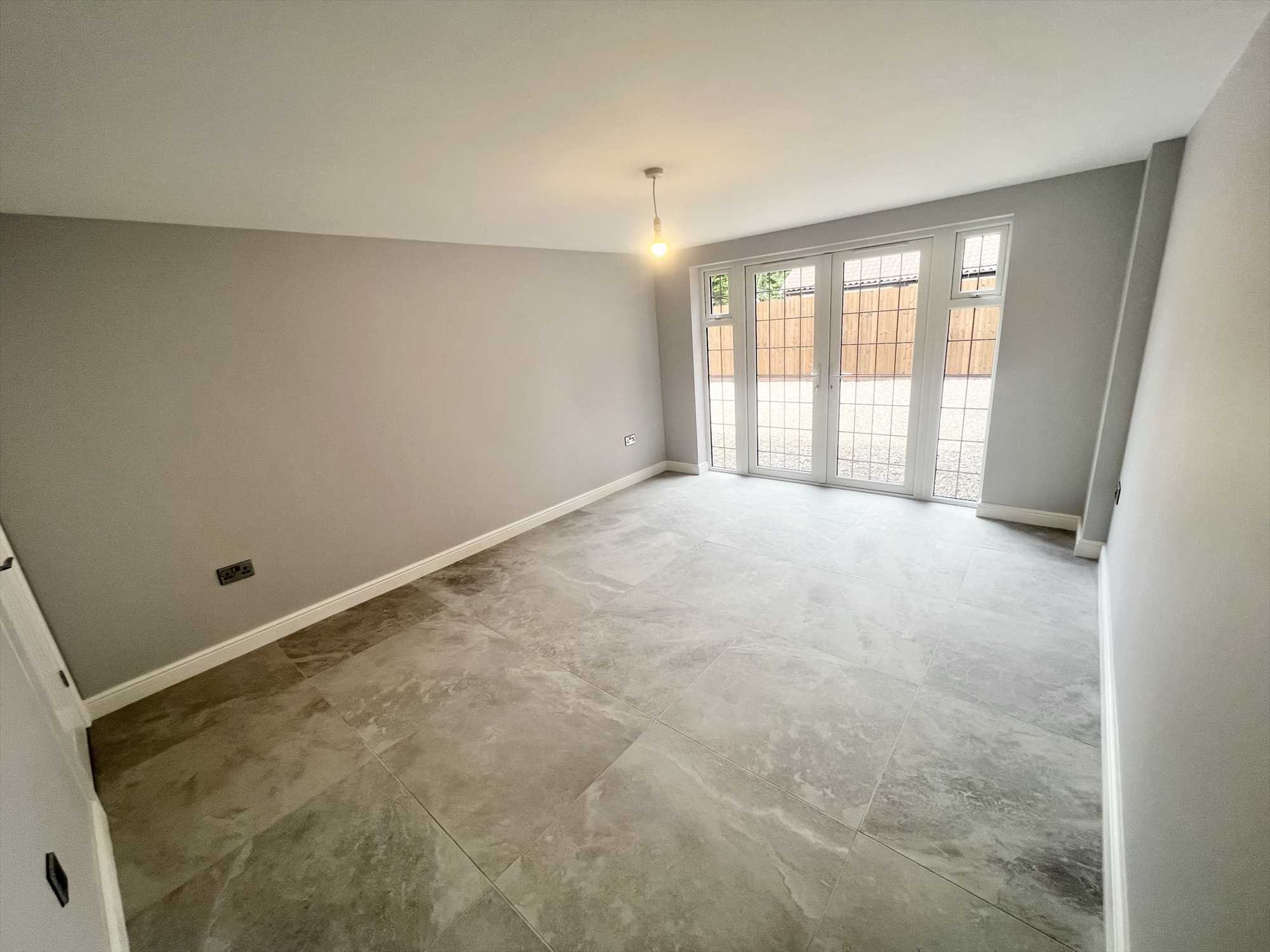 Upvc double glazed french doors and windows to front aspect, tiled flooring, underfloor heating and ceiling light pendant.