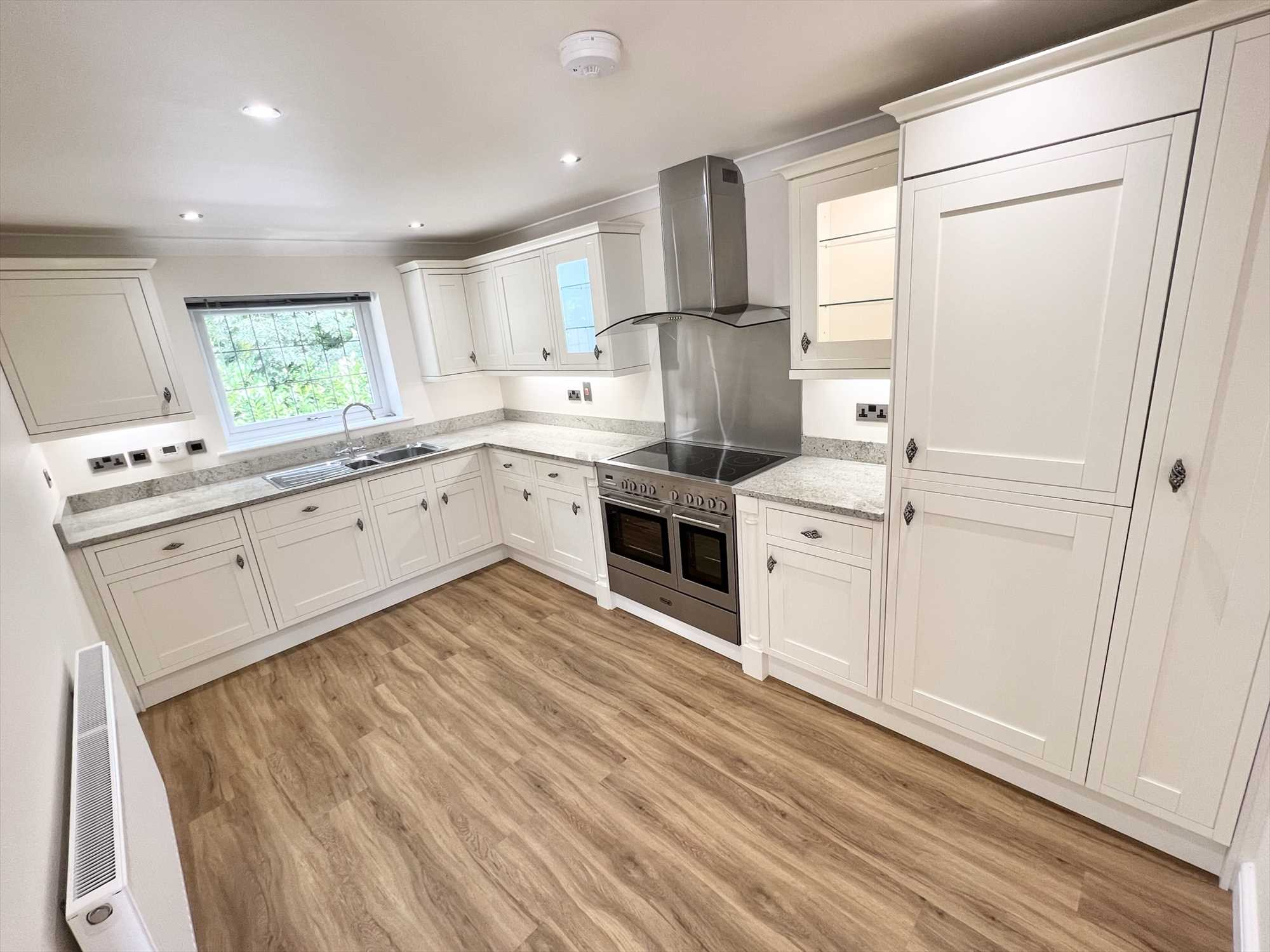 Upvc double glazed window to rear aspect, a range of matching units, integrated fridge freezer, integrated washer dryer, integrated oven and hob with extractor over, inset stainless steel ink and drainer with mixer tap over, granite work surface, wooden effect flooring, radiator and ceiling spotlights.