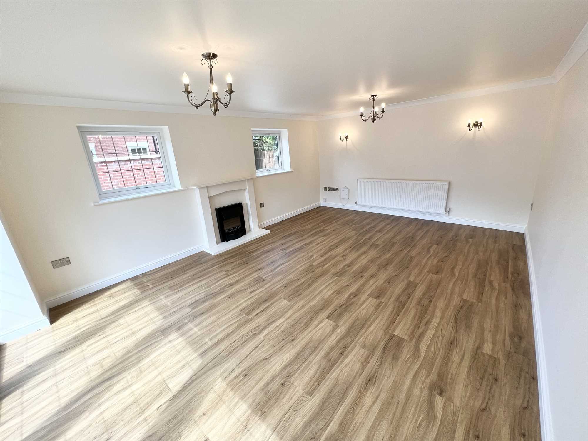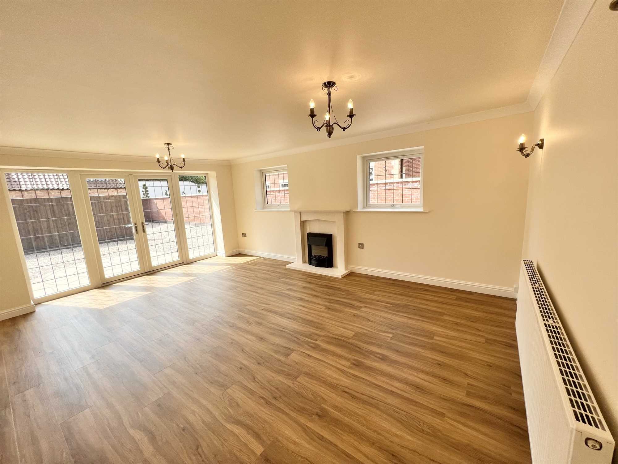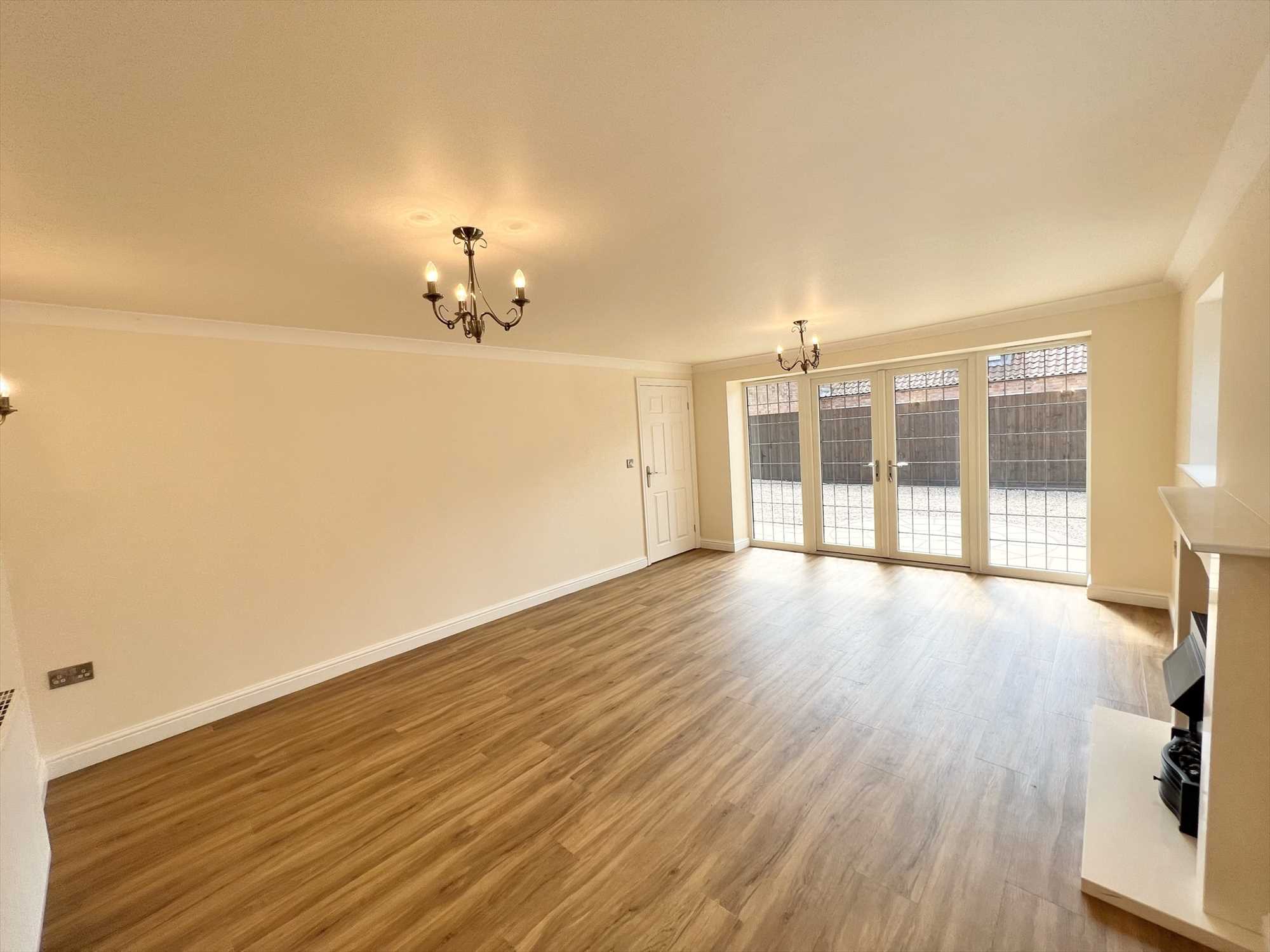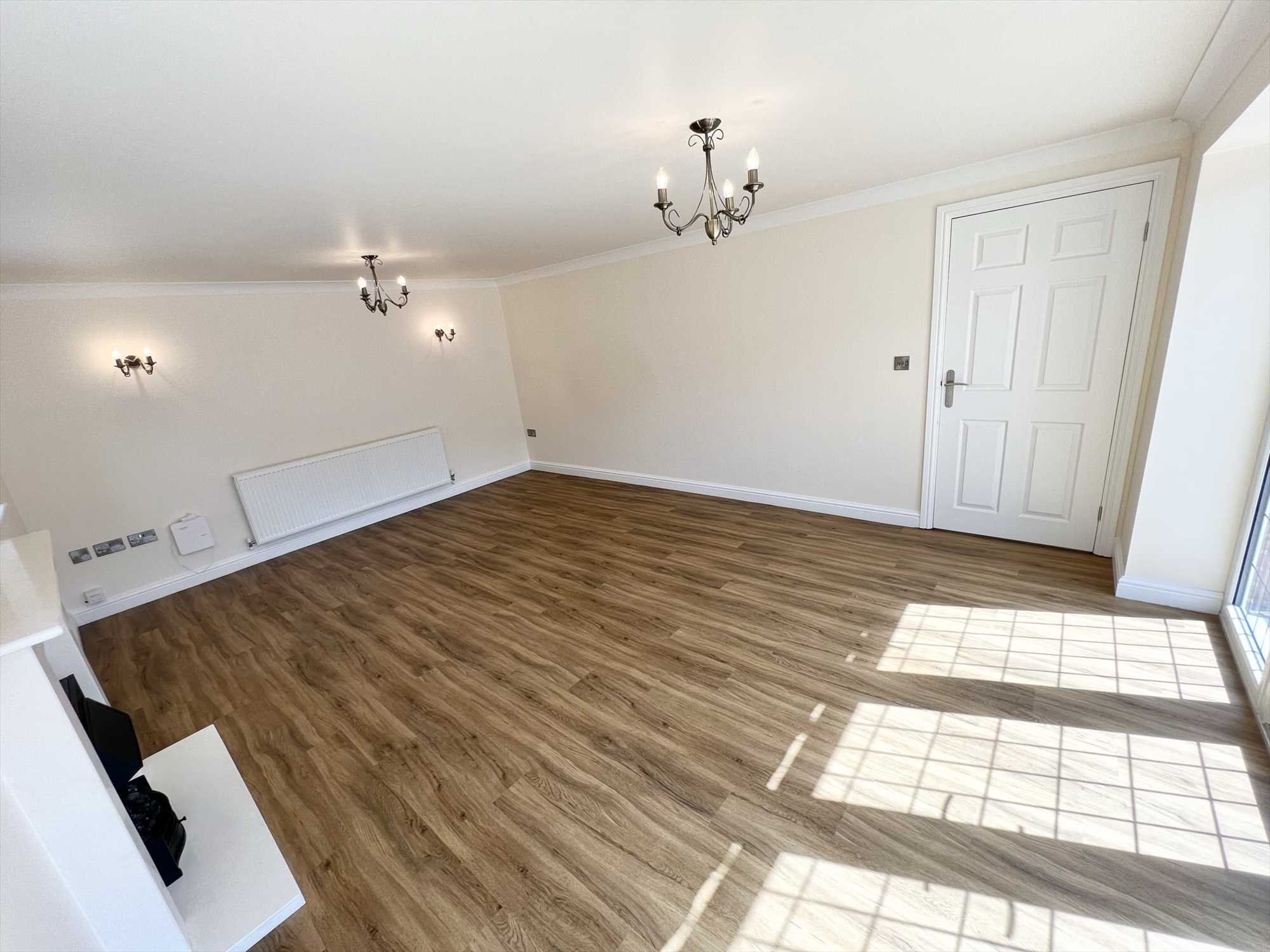 Upvc double glazed windows to side aspect, upvc double glazed french doors to front aspect, wooden effect flooring, inset electric fire, radiator and ceiling and wall light pendants.