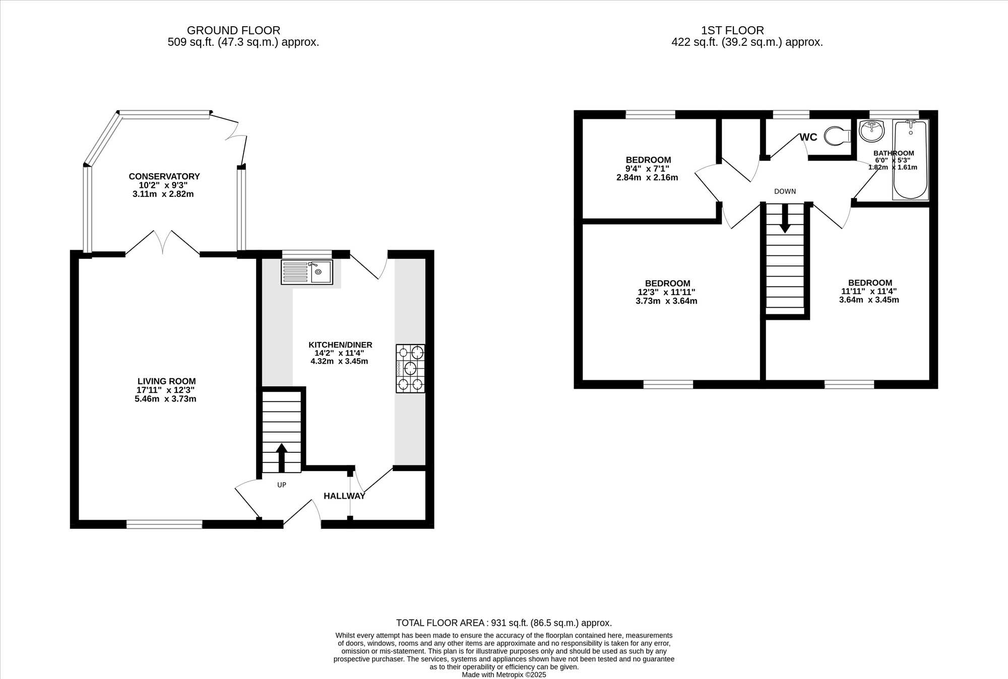 Conservatory 3.73m (12' 3") x 2.81m (9' 3")
