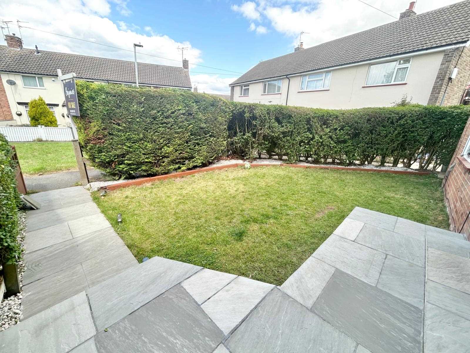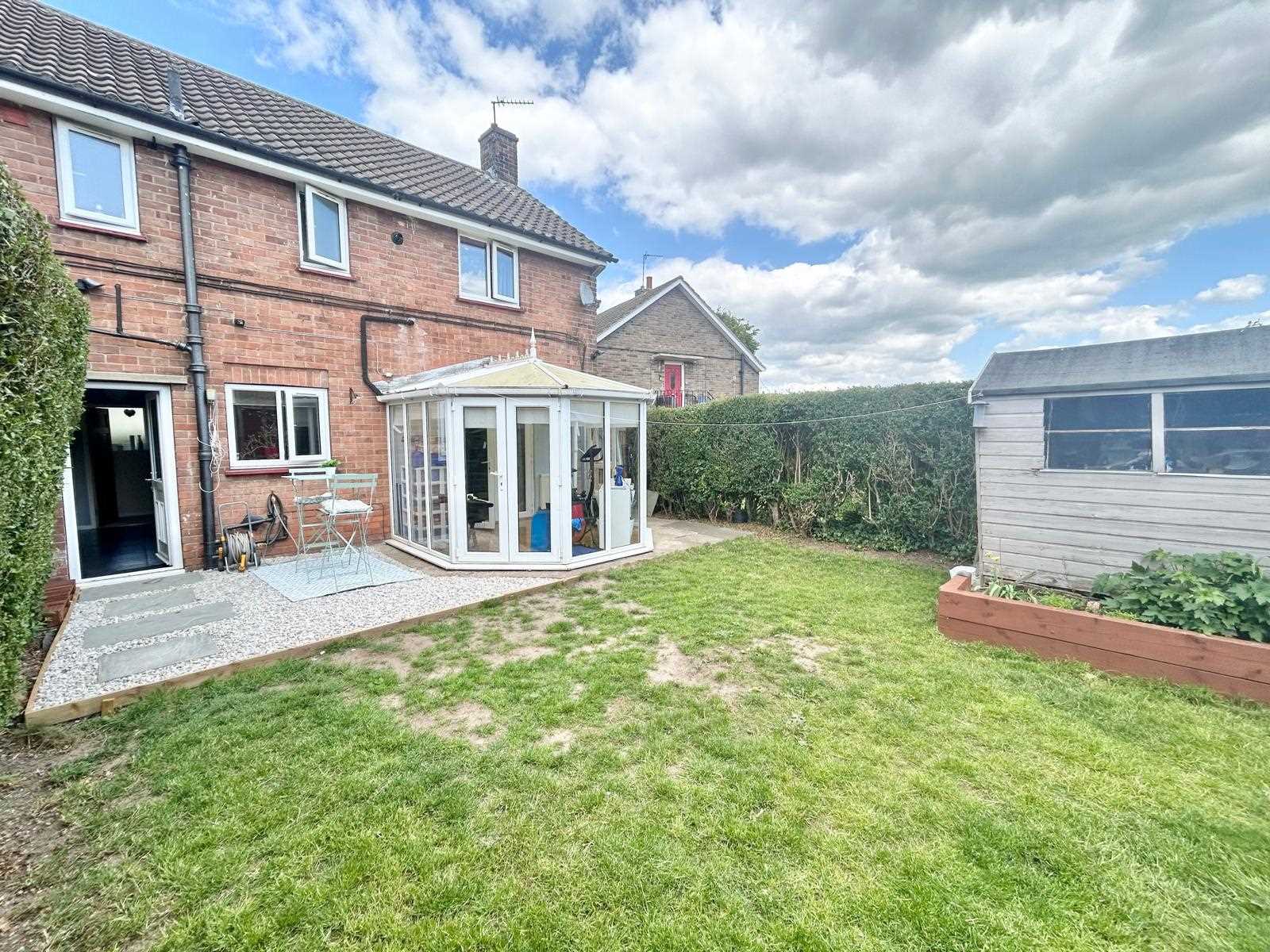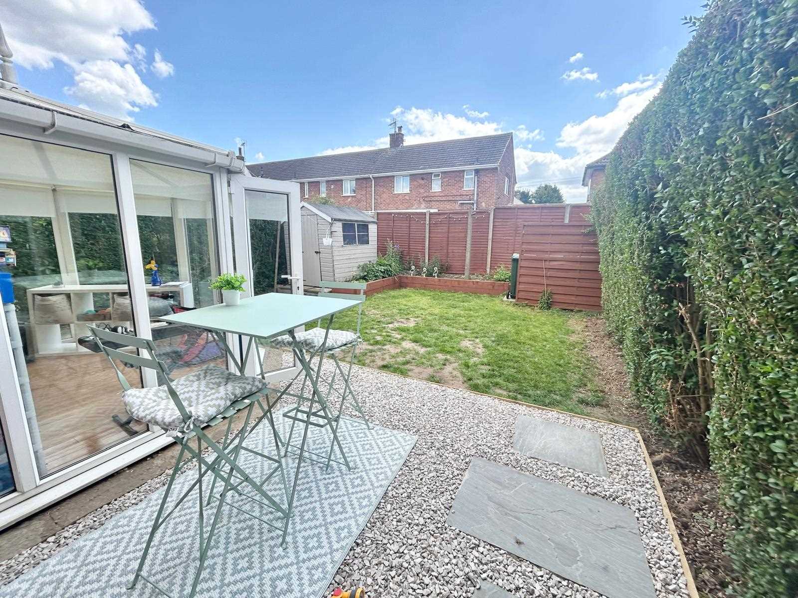 The pleasant rear garden is enclosed and has a patio seating area, hedge & fence borders, lawn and shed for storage. Gated access down the side to the front of the property.